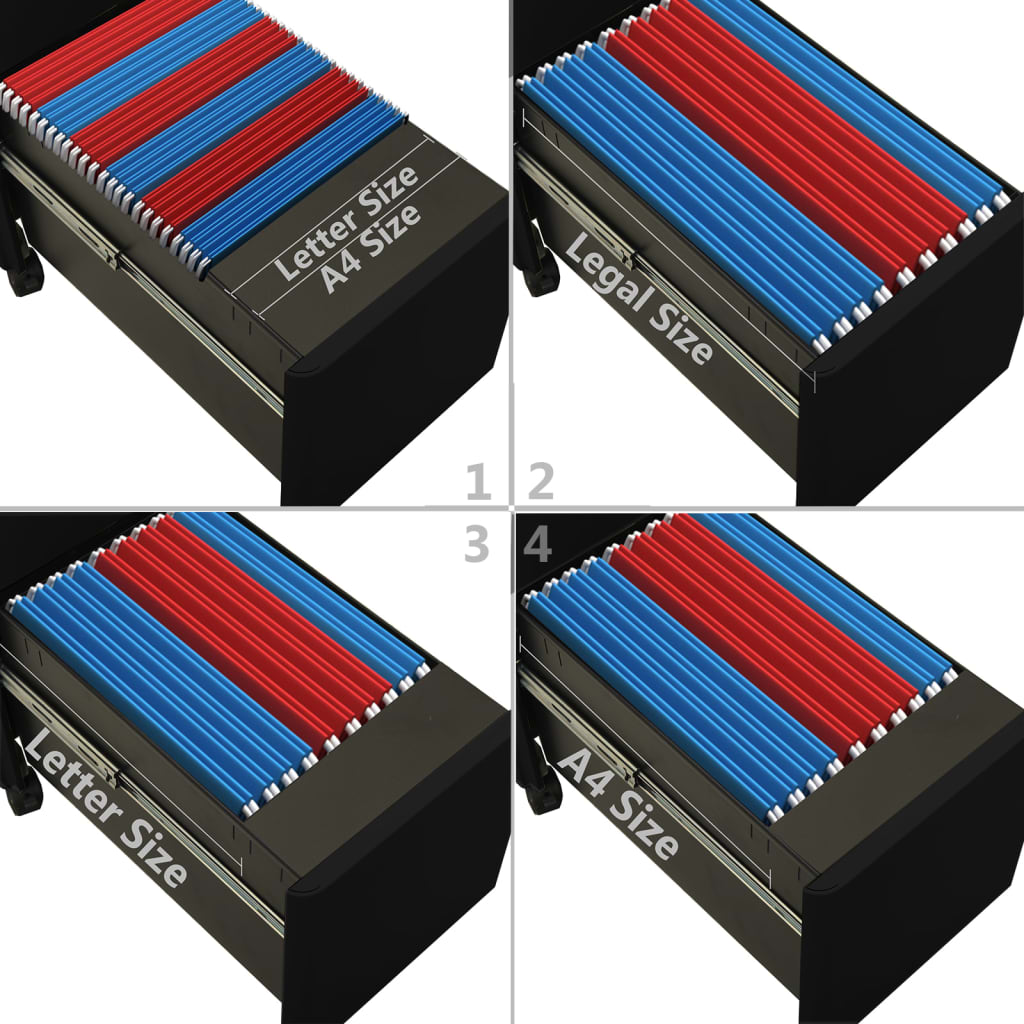 Dette kontorskab er lavet af stål, hvilket gør det holdbart samt let at rengøre. Med 3 skuffer og 1 lås giver dette arkivskab dig mulighed for at sortere dine mapper pænt i forskellige kategorier og opbevare dine dokumenter et sikkert sted. Hver skuffe er udstyret med en aftagelig stang, som frit kan kombineres til opbevaring af dokumenter i standardstørrelserne Letter, Legal og A4-hængemapper. Det mobile skab har en pennebakke, hvilket kan gøre dit skrivebord mere ryddeligt. Skufferne med kuglelejeskinner sikrer nem åbning og lukning, og de kan trækkes helt ud, selv under øget belastning. Skabets venstre og højre hjørner er desuden runde.