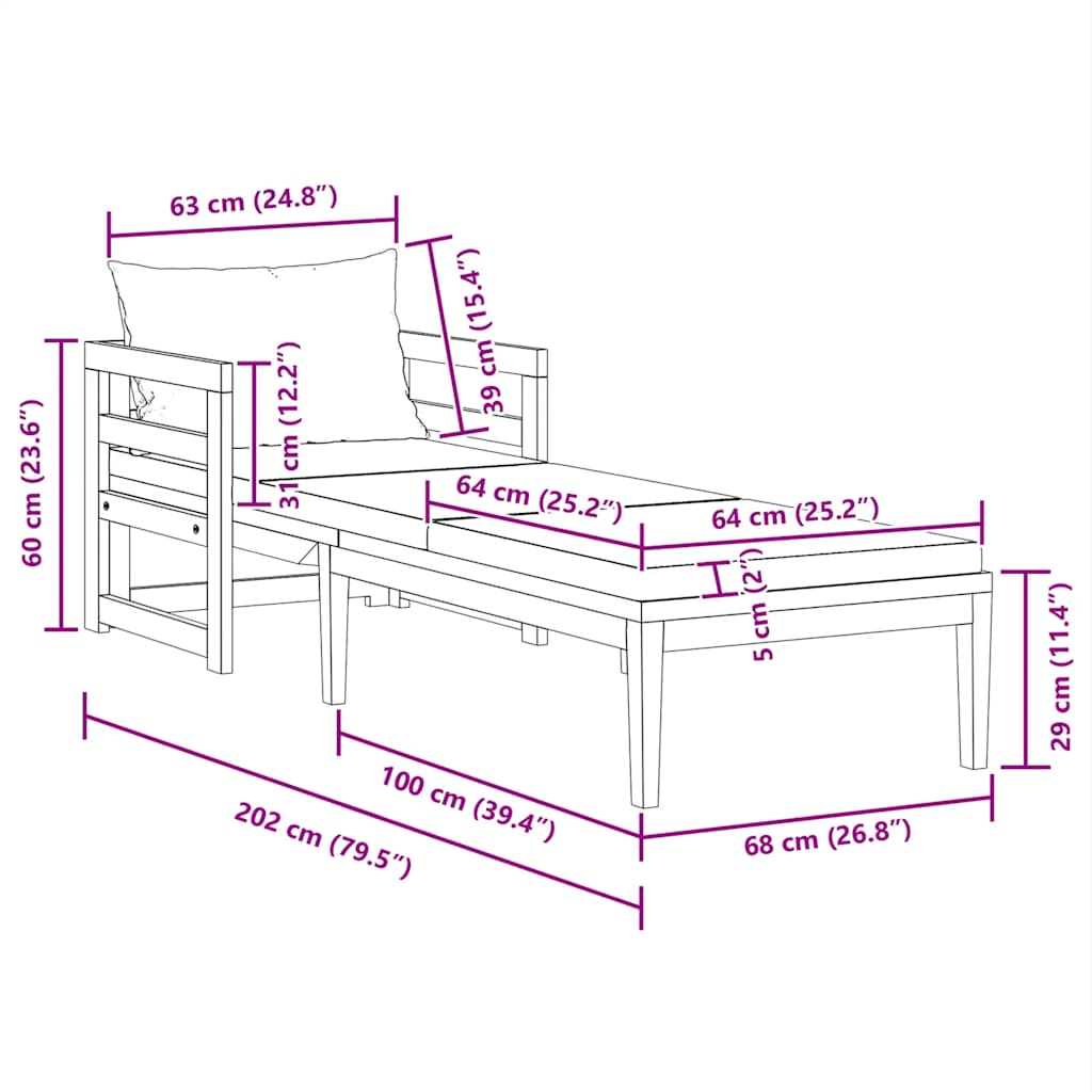 Denne liggestol til haven er fremstillet af massivt akacietræ, et hårdttræ med tætte åremønstre. Denne smukt designede solseng er stabil, slidstærk og flot. Det udsøgte håndværk og de smukke åremønstre gør hvert møbel unikt. De medfølgende hynder giver mere komfort, når du ligger og slapper af.