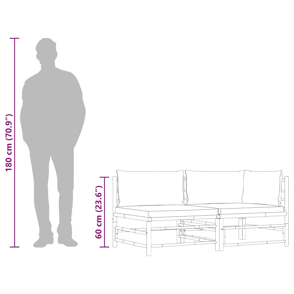 loungesæt til haven 2 dele med mørkegrå hynder bambus