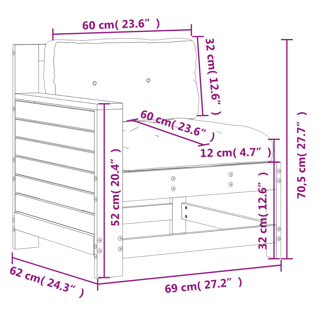 sofamodul til haven med hynde massivt fyrretræ hvid