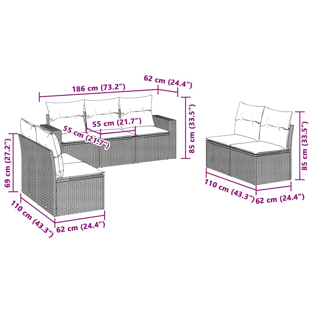 sofasæt til haven 7 dele med hynder polyrattan lysegrå