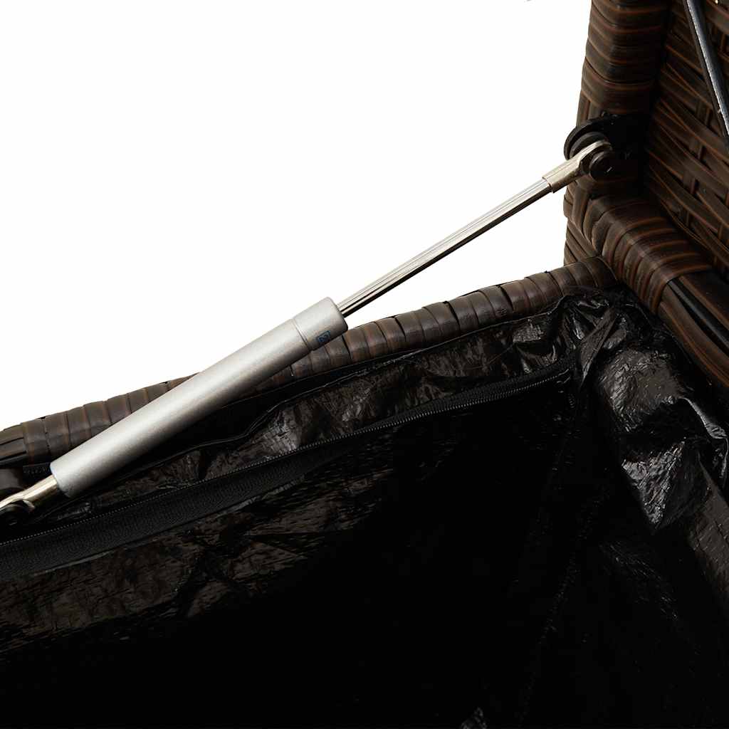 • Opbevaringsfunktion: Havesædet har opbevaringsplads nedenunder og er udstyret med en vandafvisende pose til opbevaring af hynder, legetøj og andre ting. Den indvendige pose kan fastgøres sikkert til sædet med velcrobånd, hvilket sikrer stabilitet og forhindrer bevægelse.