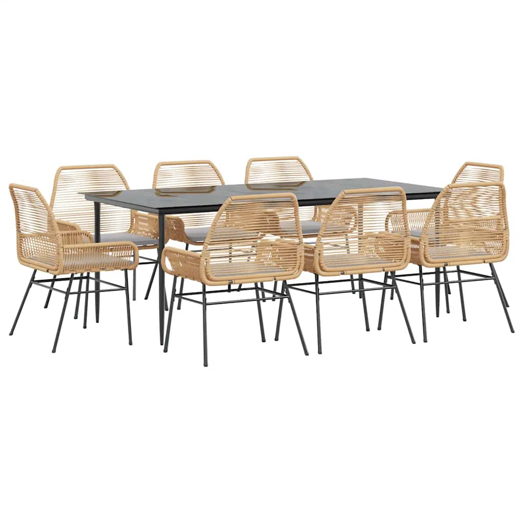 9 dele spisebordssæt til haven m. hynder polyrattan glas brun