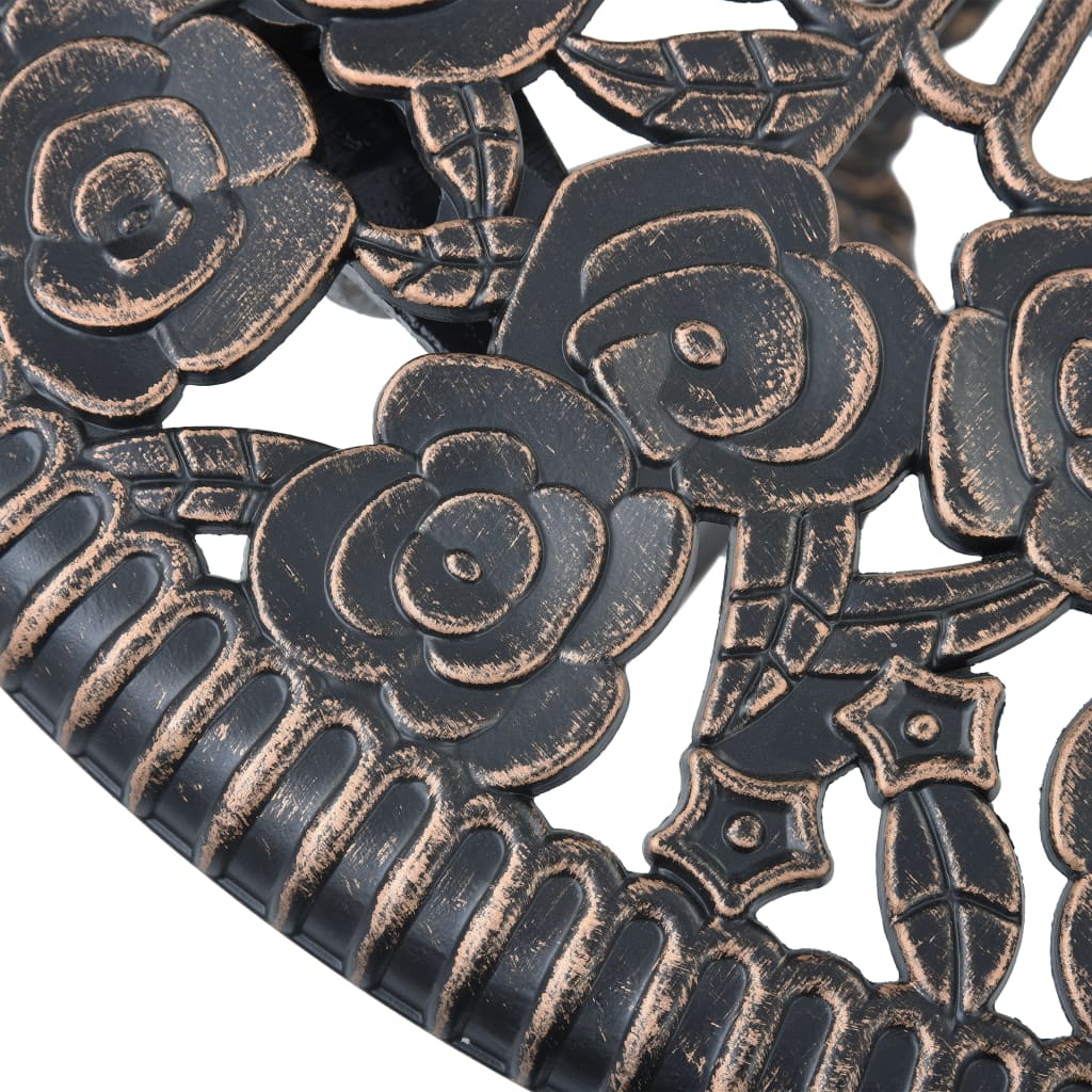 Dette bistrosæt er lavet af støbt aluminium i høj kvalitet, som kan tåle al slags vejr og er meget holdbart. Støbejernsbenene gør sættet ekstra stabilt. Det detaljerede blomstermønster giver enhver have, terrasse eller udestue et romantisk pust.