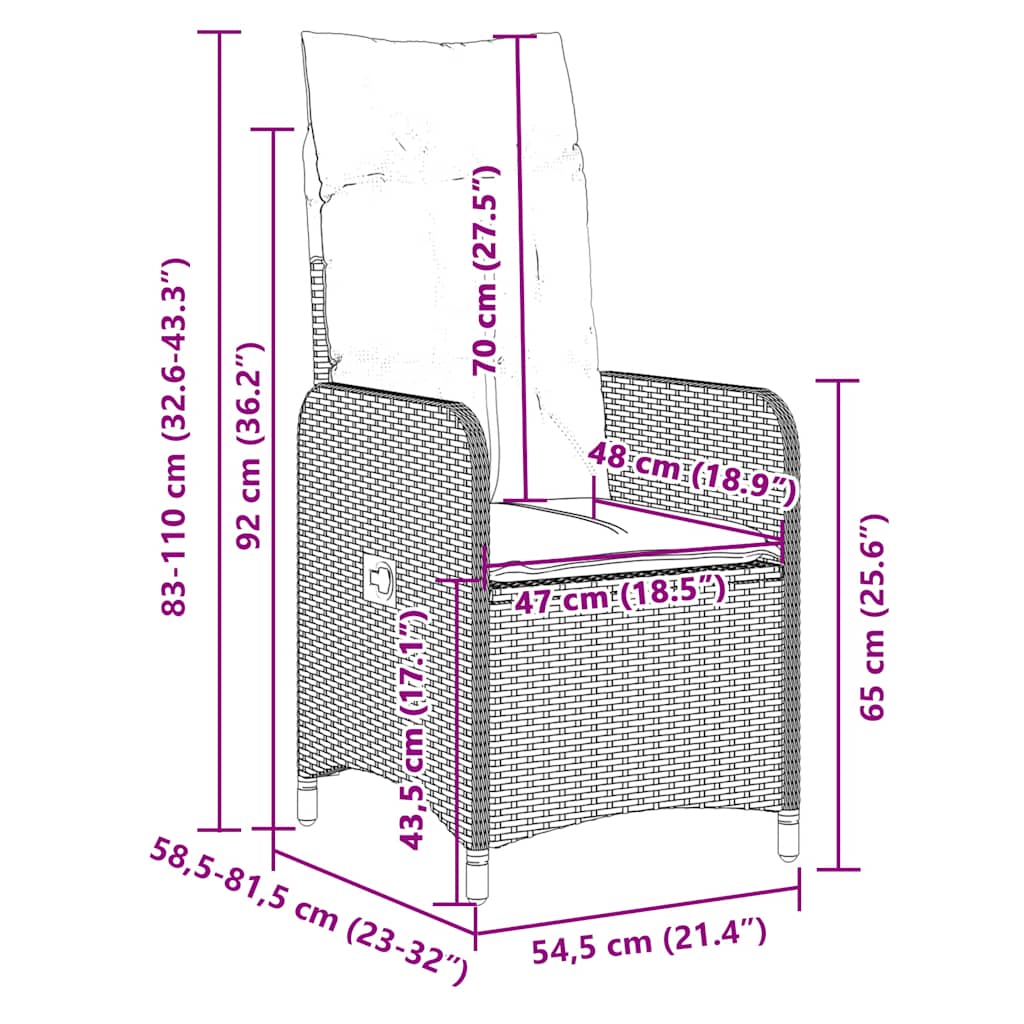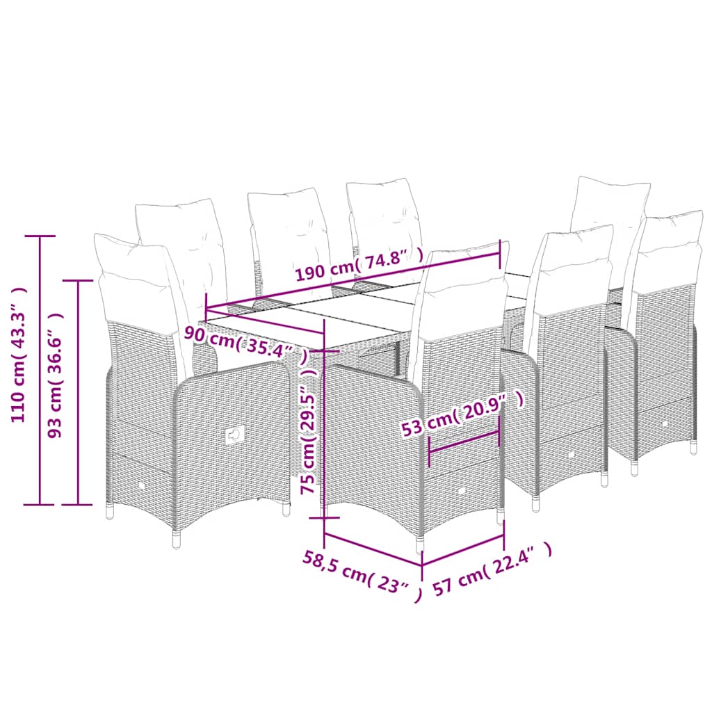 bistrosæt til haven 9 dele med hynder polyrattan brun