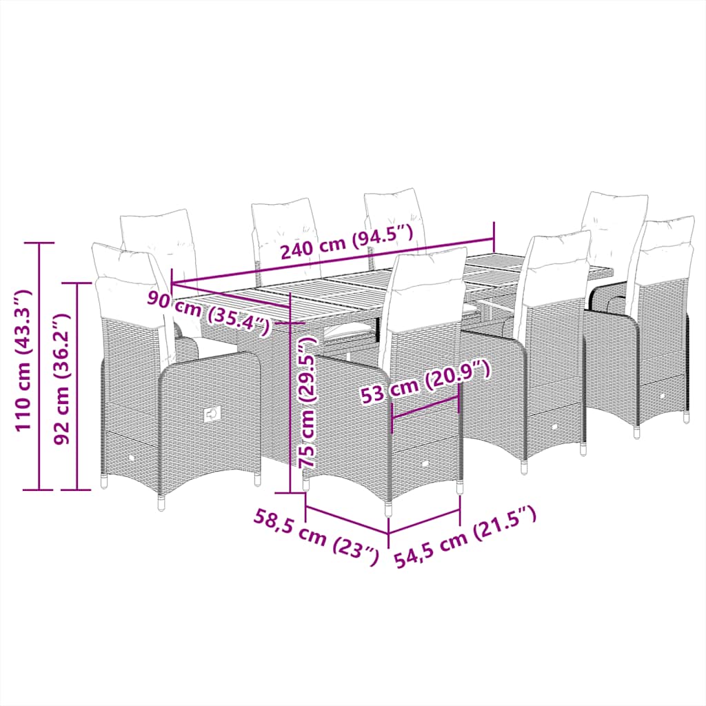 bistrosæt til haven 9 dele med hynder polyrattan sort