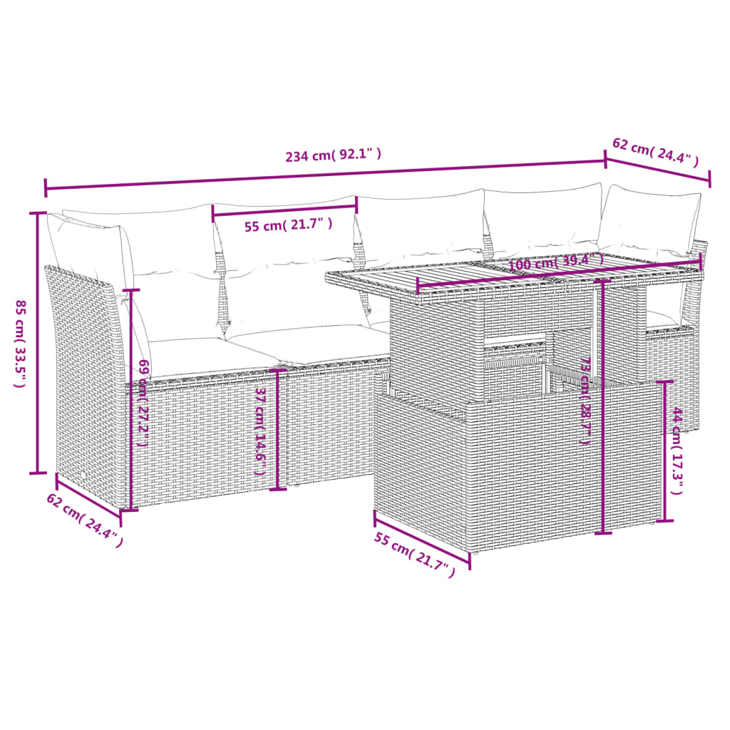 sofasæt til haven 5 dele med hynder polyrattan beige