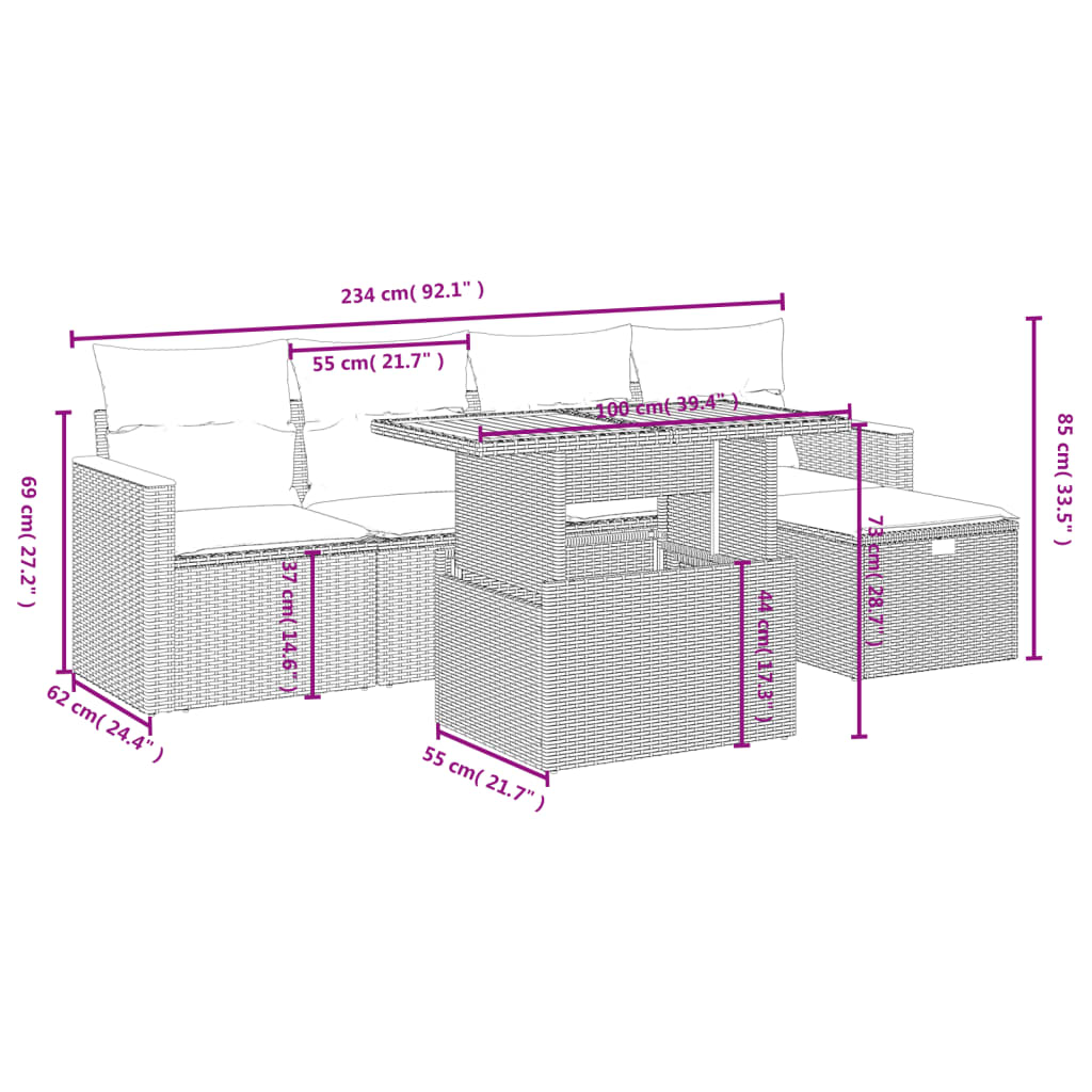 sofasæt til haven 6 dele med hynder polyrattan beige