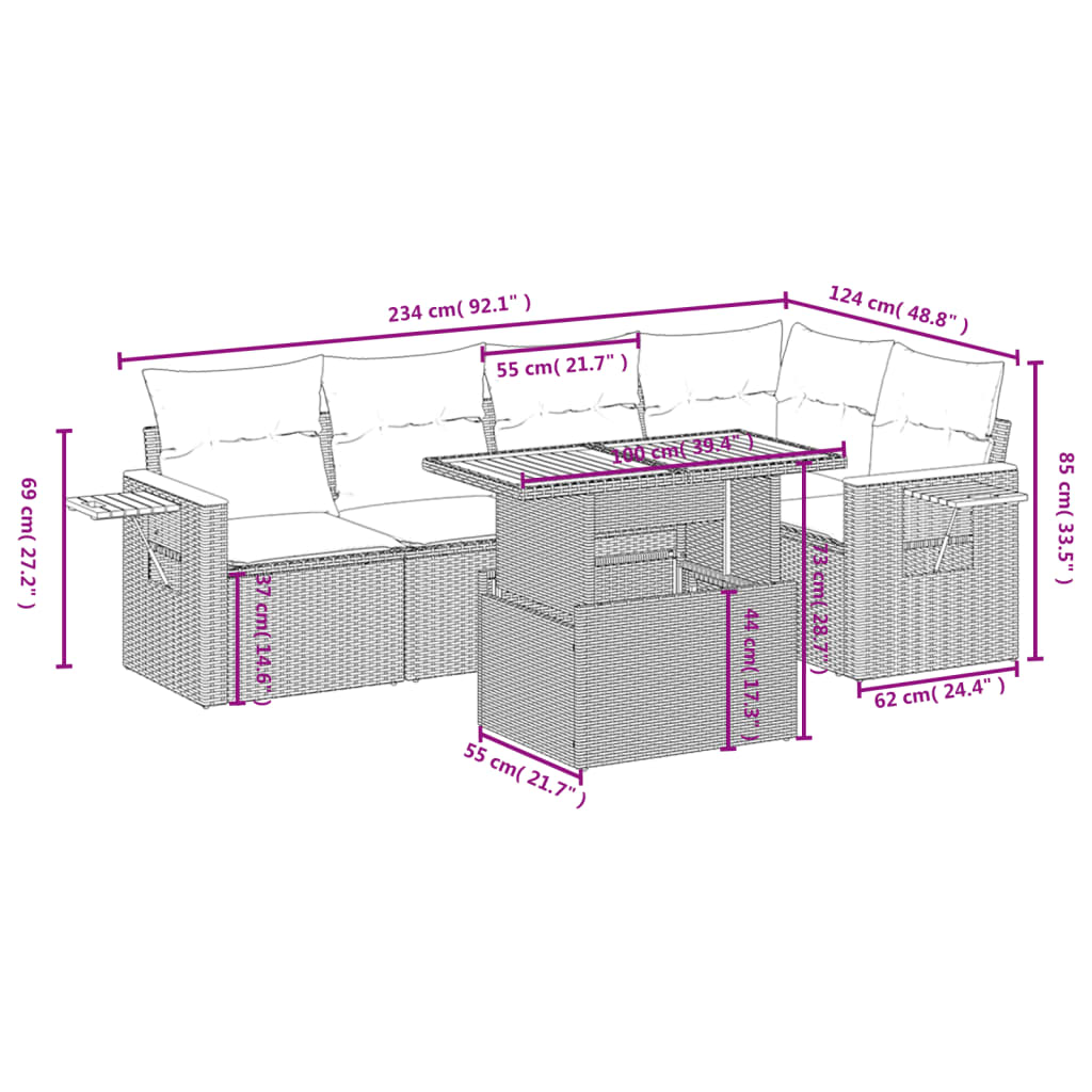 sofasæt til haven 6 dele med hynder polyrattan beige