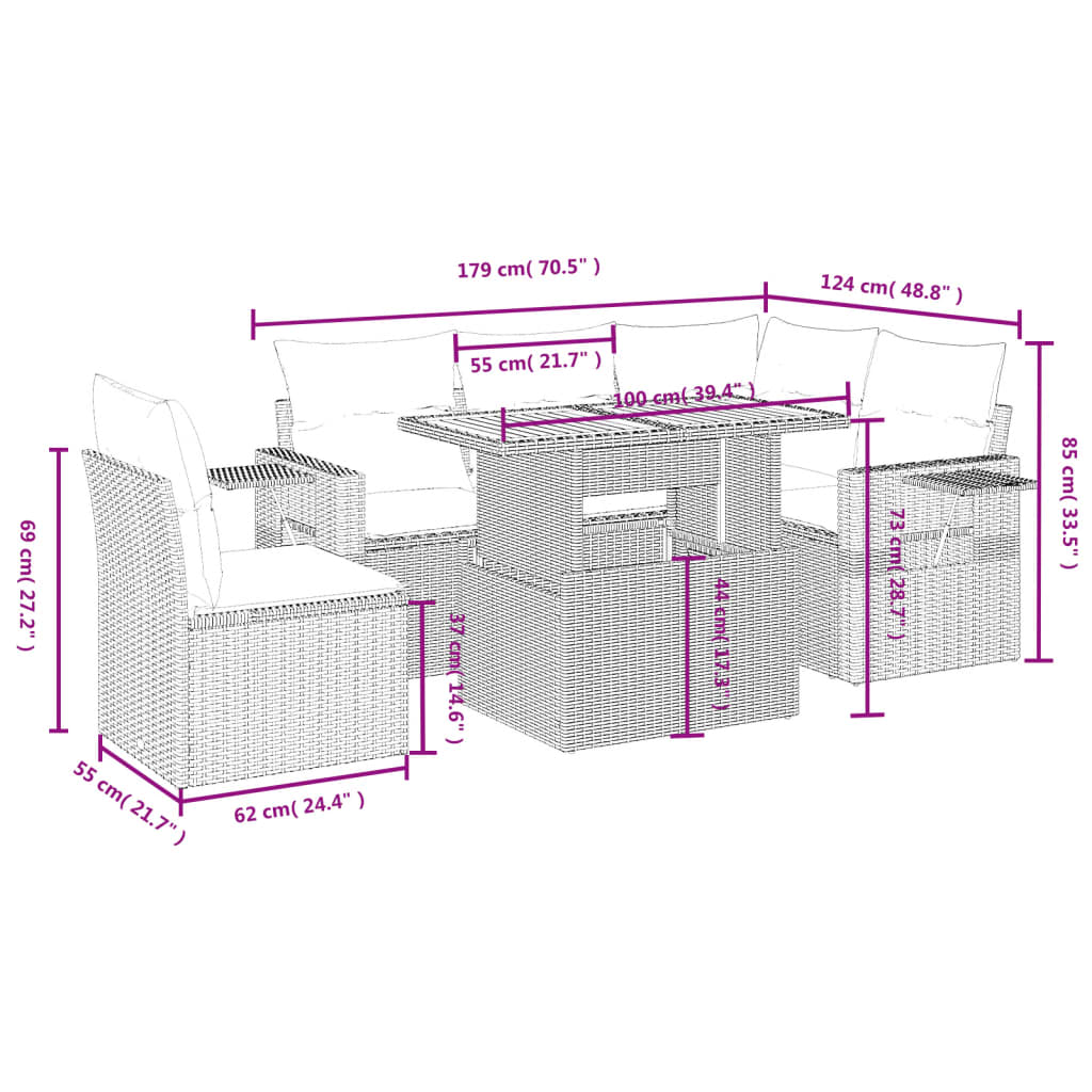 sofasæt til haven 6 dele med hynder polyrattan beige