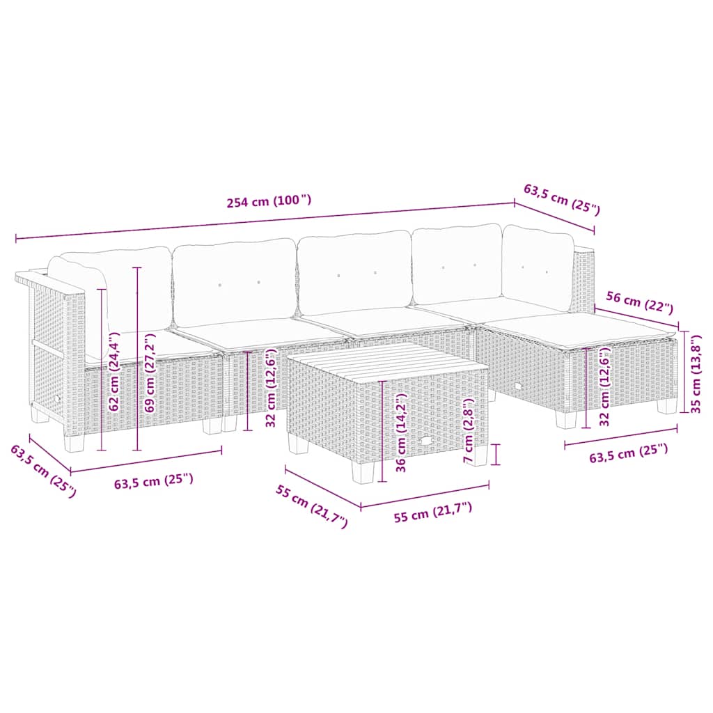 sofasæt til haven 6 dele med hynder polyrattan beige
