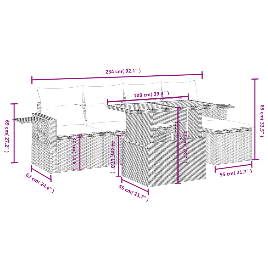 - Modulært design: Dette havemøbelsæt har et modulært design, der gør det fleksibelt og nemt at flytte rundt på, så du kan skabe et skræddersyet havemøbelarrangement.