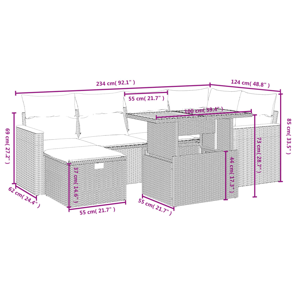 sofasæt til haven 7 dele med hynder polyrattan beige