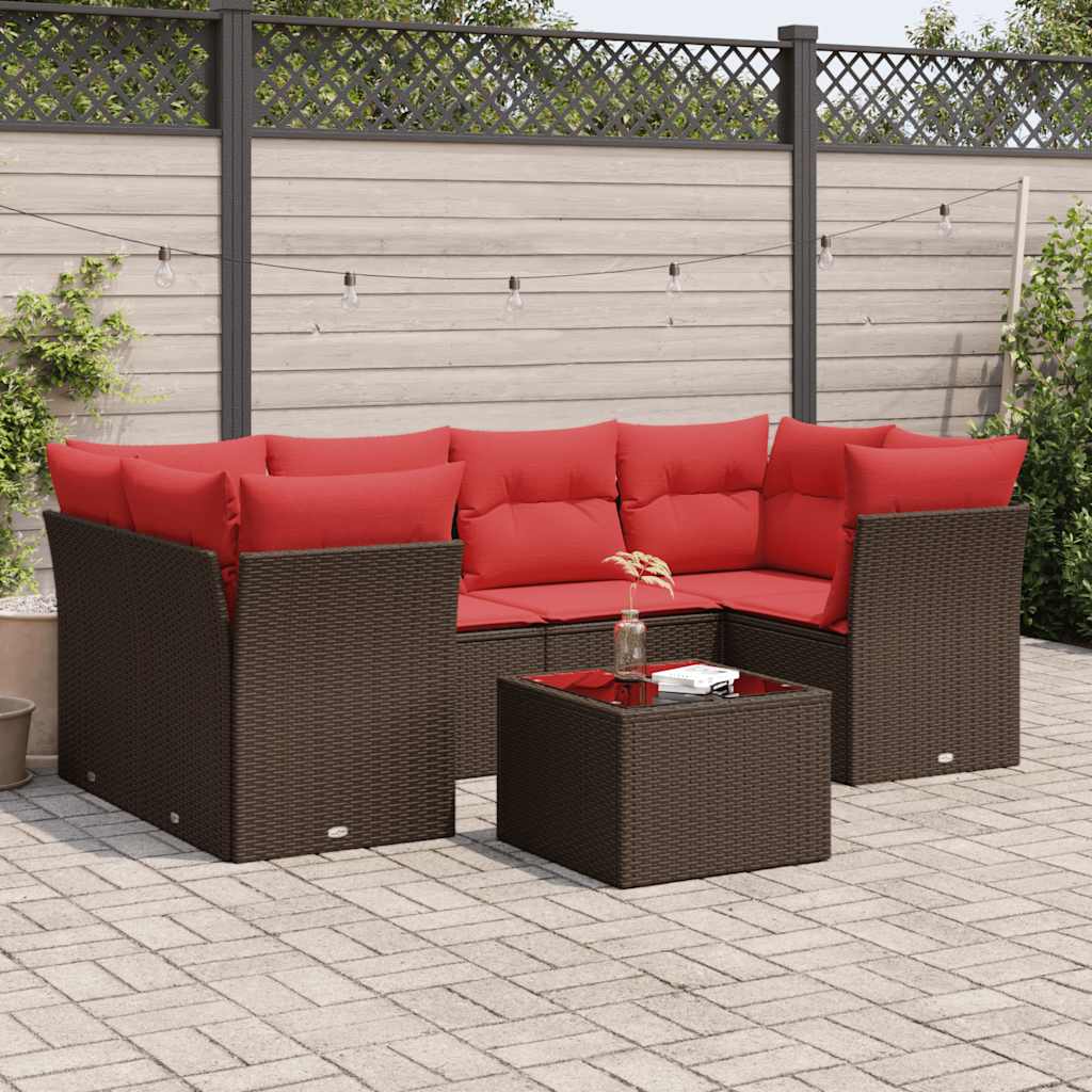 sofasæt til haven 7 dele med hynder polyrattan brun