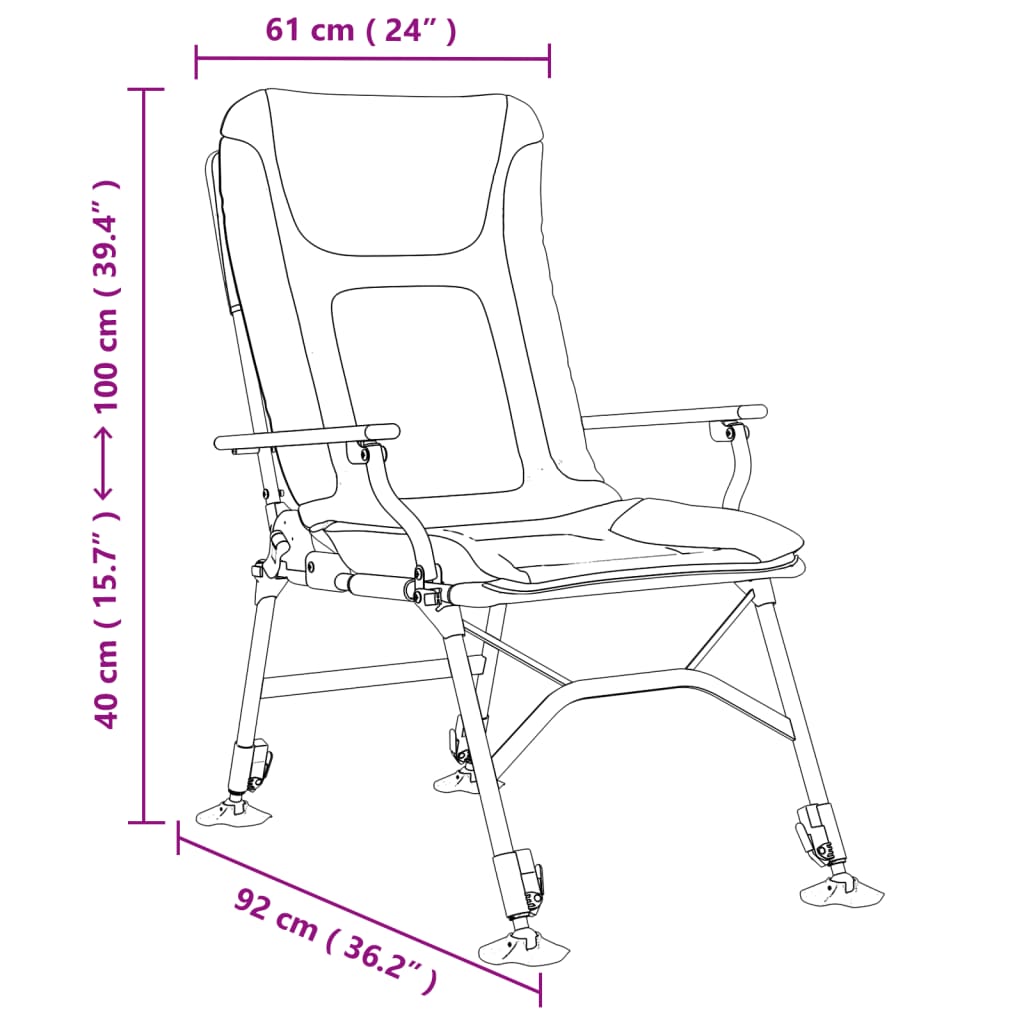 • Langtidsholdbar og robust: Fiskestolen er fremstillet af pulverlakeret stål, hvilket gør den robust og langtidsholdbar.