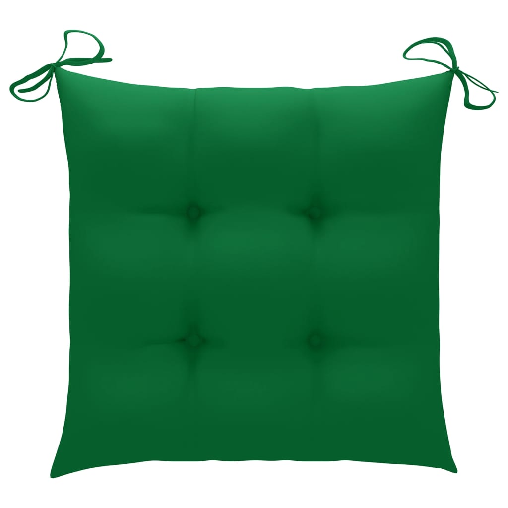 Dette møbelsæt er fremstillet af yderst slidstærkt teaktræ, som er ovntørret og derefter fintslebet, så det har en meget blød og glat overflade. Teaktræ er kendt for sin enestående styrke og vejrbestandighed, hvilket gør det langt mere velegnet til havemøbler i forhold til andre træsorter. Teaktræ er det perfekte valg, hvis du ønsker at købe langtidsholdbare møbler. Spisebordsstolene er vejrbestandige og lette at rengøre takket være den slebne overflade. De kan også foldes sammen for at spare plads, når de ikke er i brug. Derudover giver de medfølgende hynder ekstra komfort. Hver hynde er forsynet med 2 sæt snore for nem fastgørelse til stolen.