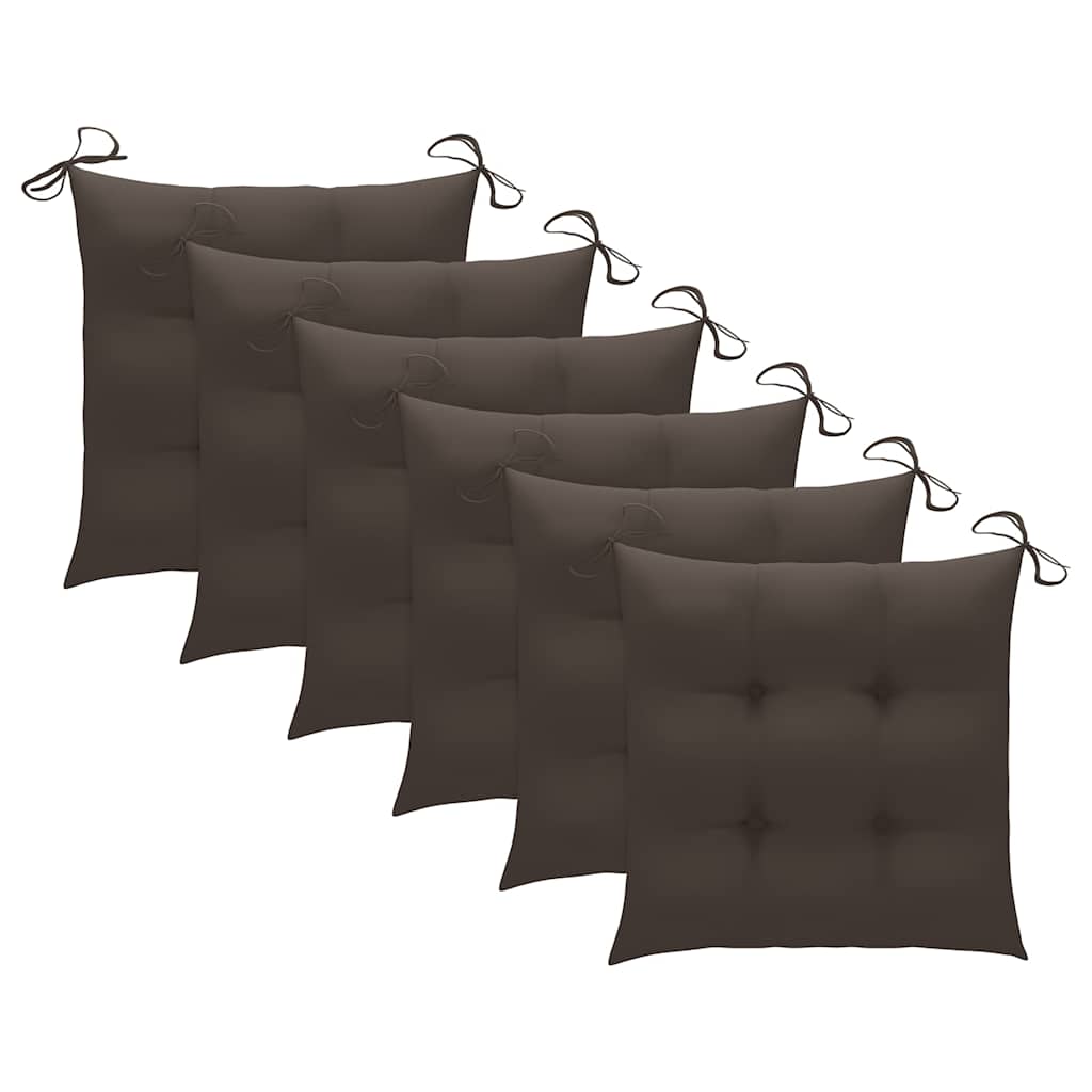 Dette møbelsæt er fremstillet af yderst slidstærkt teaktræ, som er ovntørret og derefter fintslebet, så det har en meget blød og glat overflade. Teaktræ er kendt for sin enestående styrke og vejrbestandighed, hvilket gør det langt mere velegnet til havemøbler i forhold til andre træsorter. Teaktræ er det perfekte valg, hvis du ønsker at købe langtidsholdbare møbler. Spisebordsstolene er vejrbestandige og lette at rengøre takket være den slebne overflade. De kan også foldes sammen for at spare plads, når de ikke er i brug. Derudover giver de medfølgende hynder ekstra komfort. Hver hynde er forsynet med 2 sæt snore for nem fastgørelse til stolen.