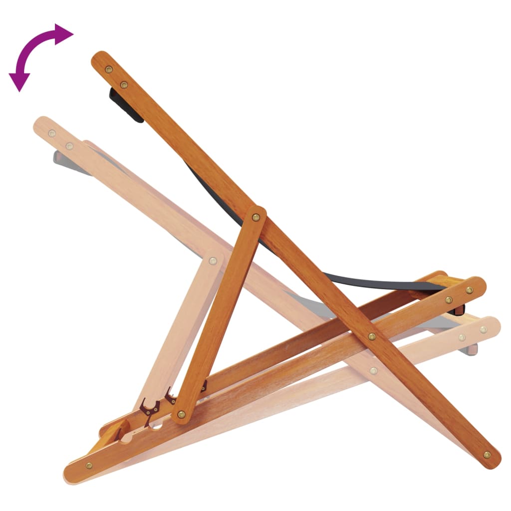 Slap af i disse lænestole på stranden, campingpladsen eller i haven. De foldbare strandstole er fremstillet af massivt eukalyptustræ og polyesterstof, så de er vejrbestandige og særdeles holdbare.