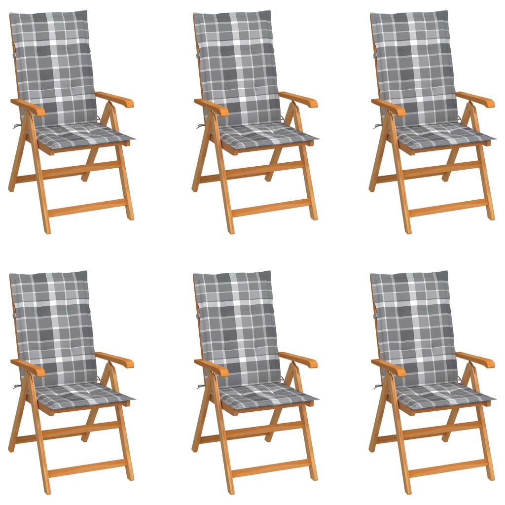 havestole 6 stk. gråternede hynder massivt teaktræ