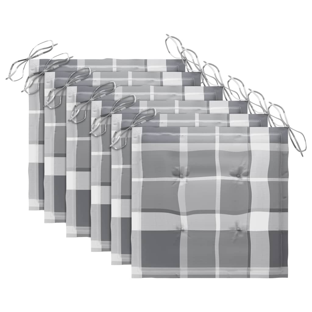 havestole 6 stk. med gråternede mønstre massivt teaktræ