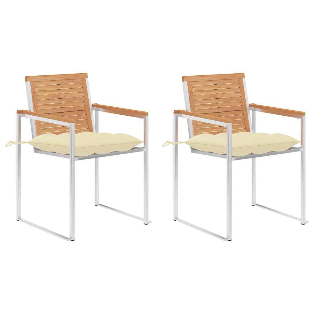 havestole med hynder 2 stk. massivt teaktræ og stål