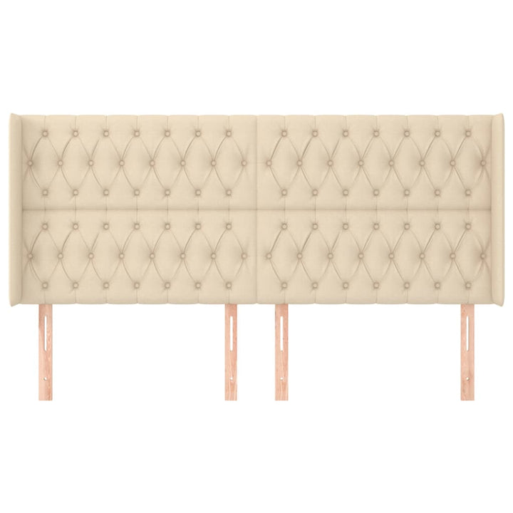 sengegavl med kanter 183x16x118/128 cm stof cremefarvet