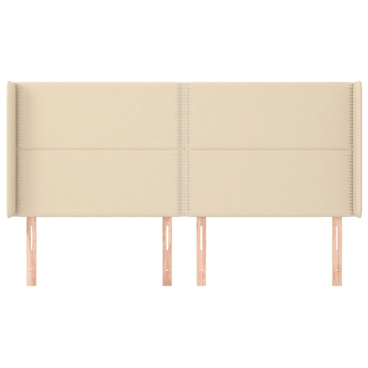 sengegavl med kanter 183x16x118/128 cm stof cremefarvet