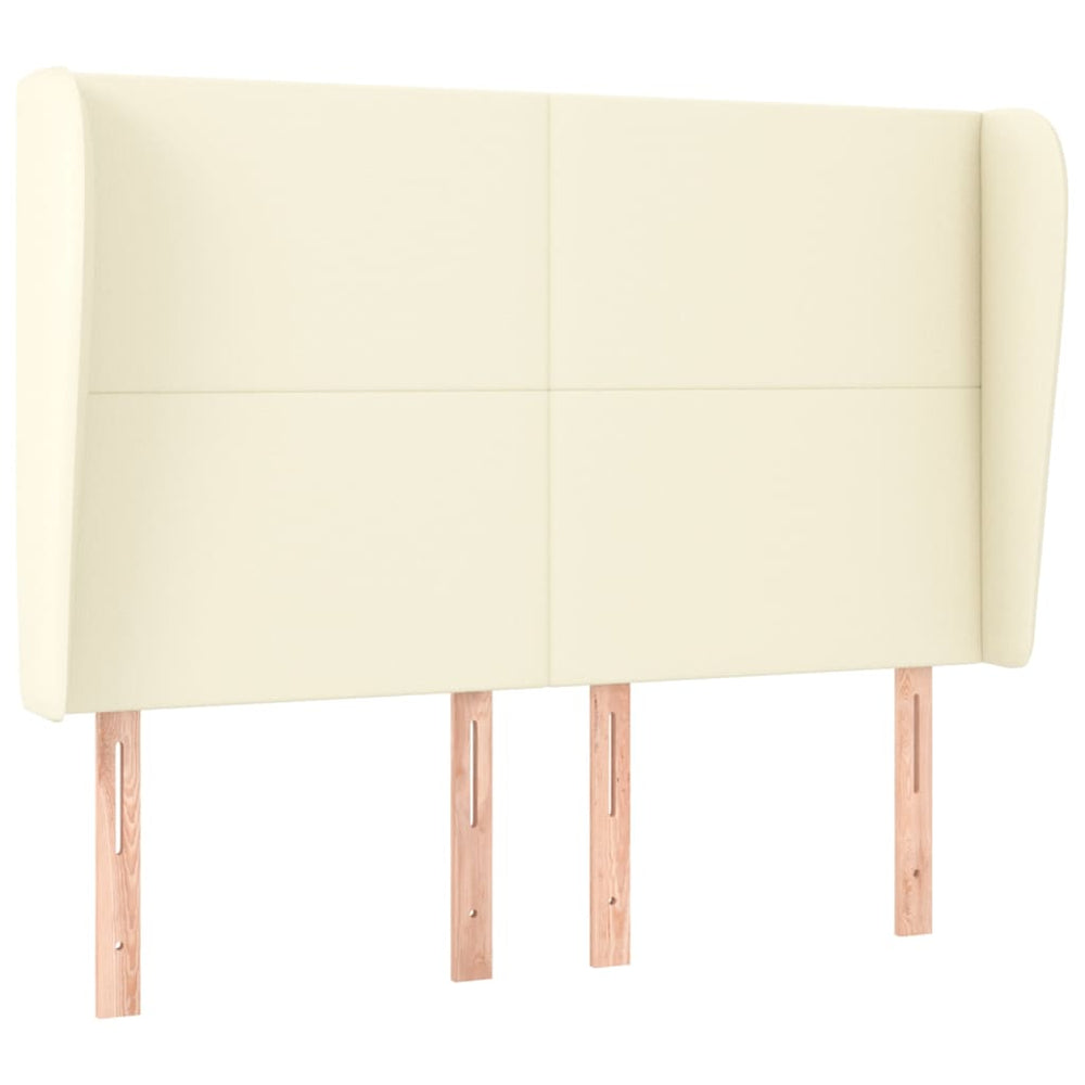 sengegavl med kanter 147x23x118/128 cm kunstlæder cremefarvet