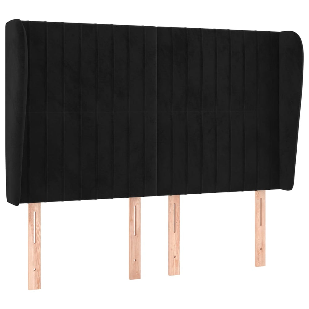 sengegavl med kanter 147x23x118/128 cm fløjl sort