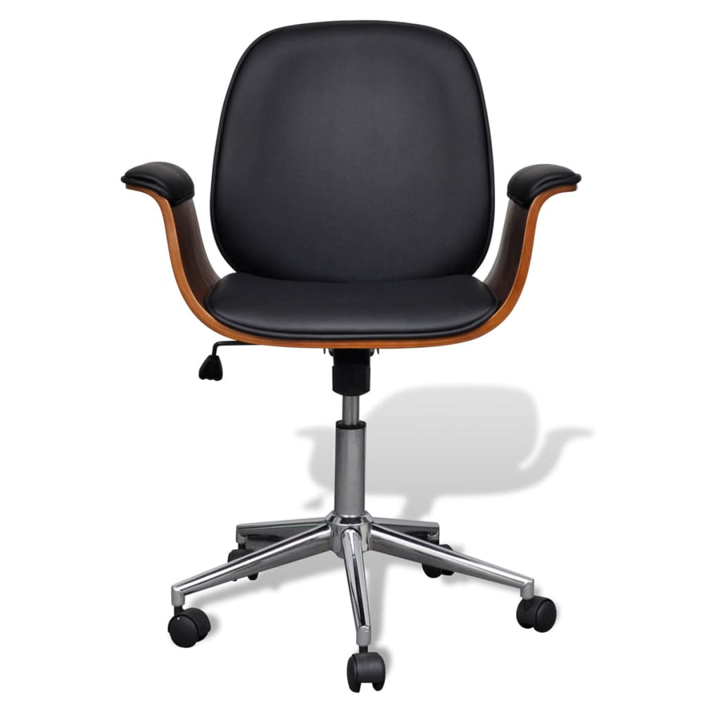 drejelig kontorstol med nakkestøtte bøjet træ kunstlæder