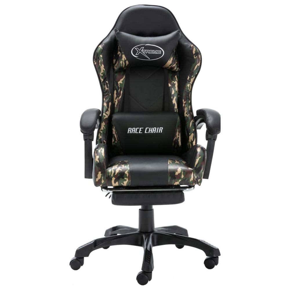 gamerstol med fodstøtte kunstlæder sort og camouflage