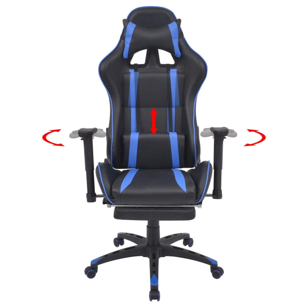 kontorstol i racerdesign med lænefunktion og fodstøtte blå