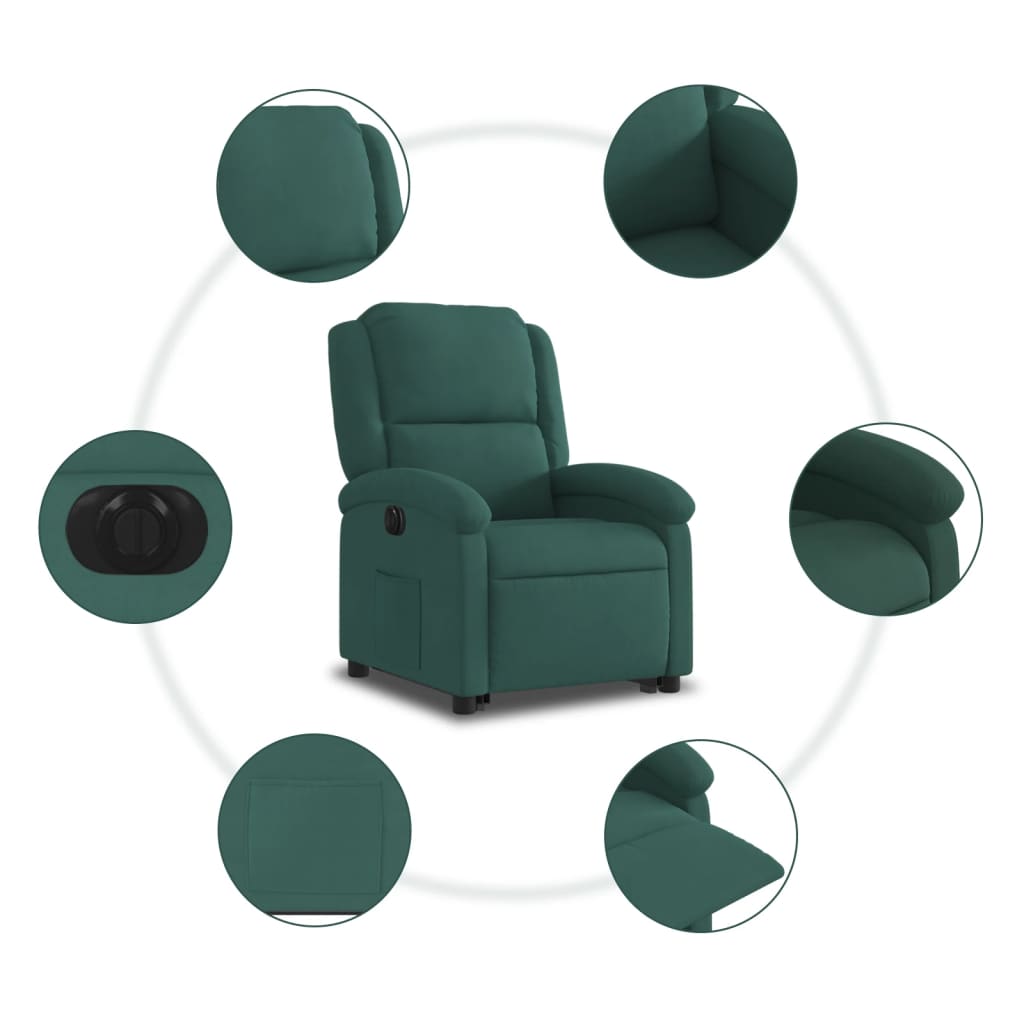 eldrevet lænestol med løftefunktion velour mørkegrøn
