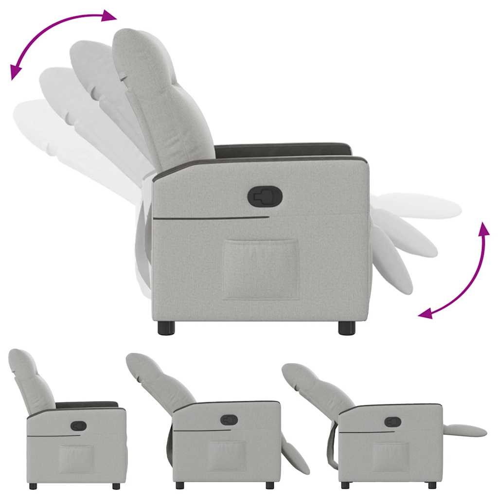 • Manuel lænefunktion: Denne lænestol har et håndtag i højre side. Med et enkelt træk i håndtaget kan du manuelt justere fodstøtten og ryglænet til en hvilken som helst position, som du finder behagelig. Denne funktion giver mulighed for en maksimal hældning på 135 grader. Derudover kan ryglænet hurtigt føres tilbage til den oprindelige position med et let træk i håndtaget.