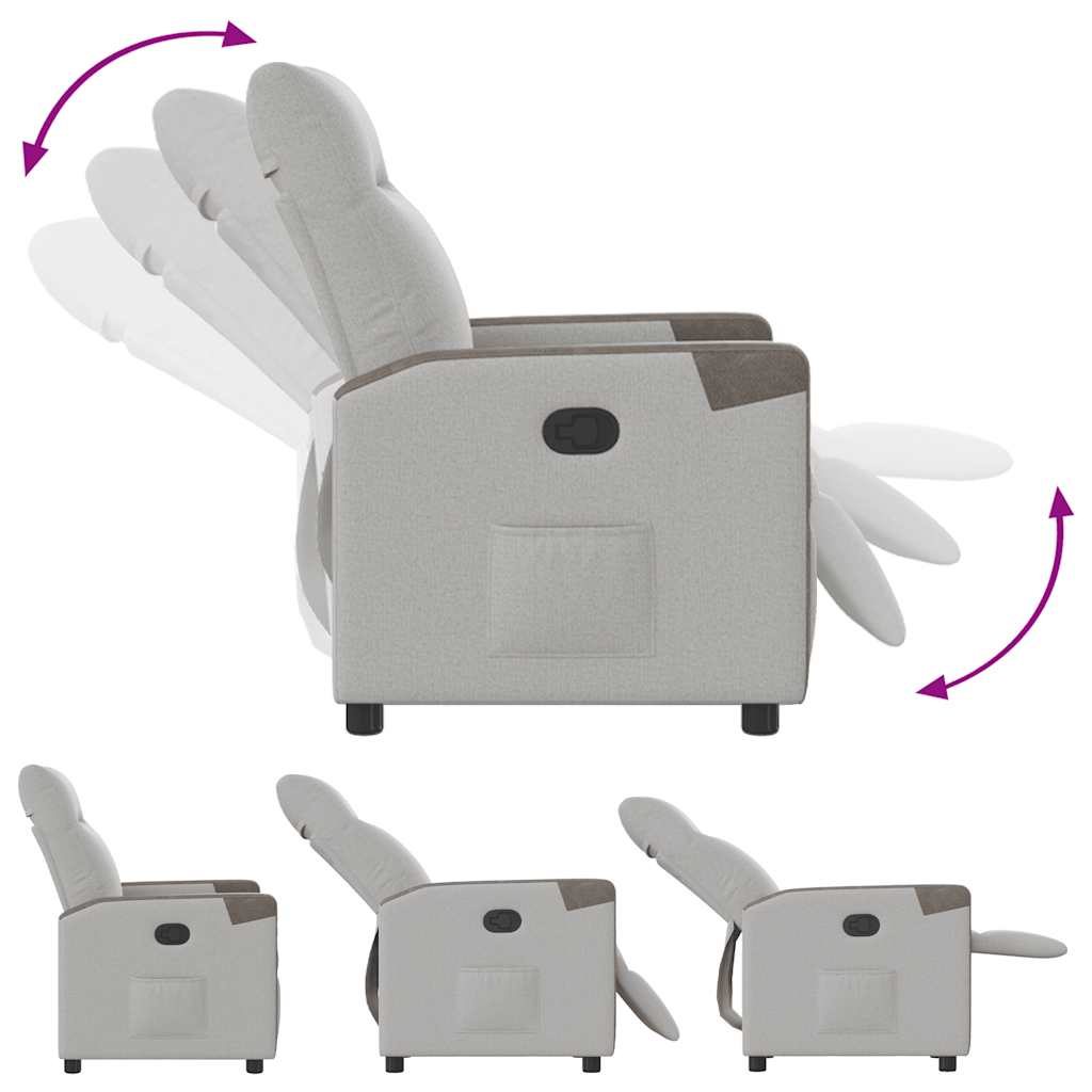 • Manuel lænefunktion: Denne lænestol har et håndtag i højre side. Med et enkelt træk i håndtaget kan du manuelt justere fodstøtten og ryglænet til en hvilken som helst position, som du finder behagelig. Denne funktion giver mulighed for en maksimal hældning på 135 grader. Derudover kan ryglænet hurtigt føres tilbage til den oprindelige position med et let træk i håndtaget.