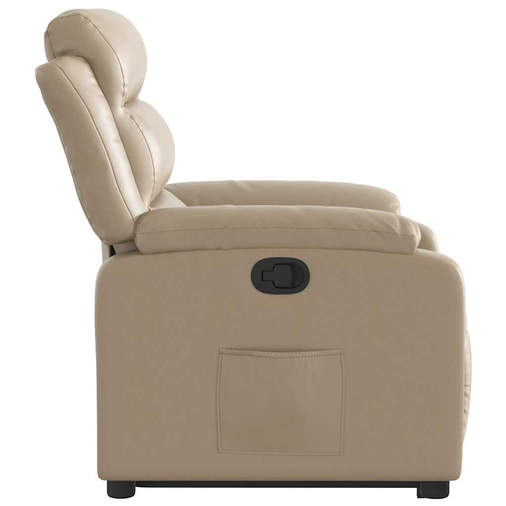 • Manuel lænefunktion: Denne lænestol har et håndtag i højre side. Med et enkelt træk i håndtaget kan du manuelt justere fodstøtten og ryglænet til en hvilken som helst position, som du finder behagelig. Denne funktion giver mulighed for en maksimal hældning på 135 grader. Derudover kan ryglænet hurtigt føres tilbage til den oprindelige position med et let træk i håndtaget.