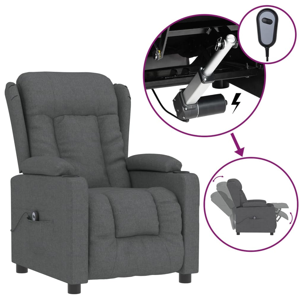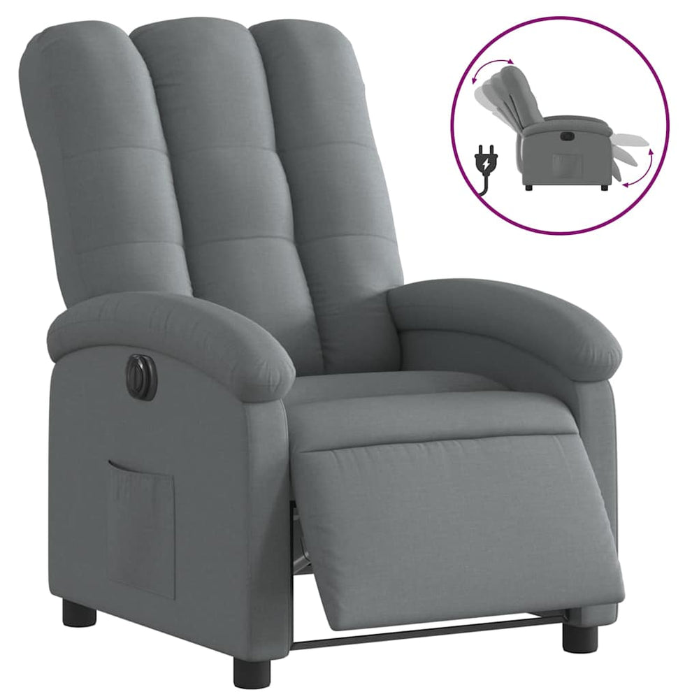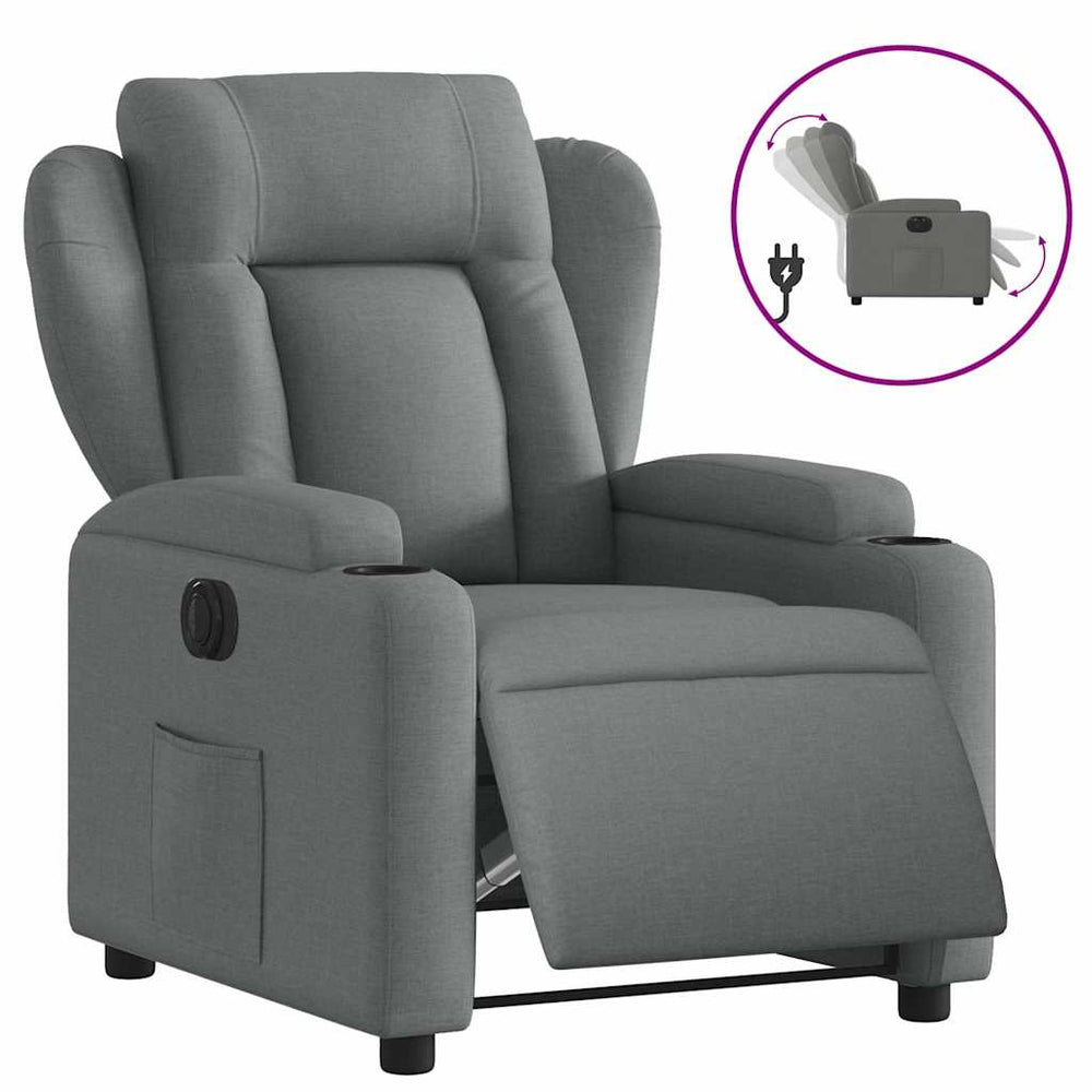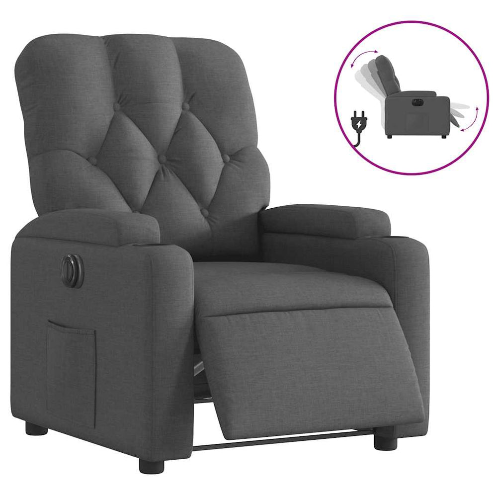 eldrevet lænestol stof mørkegrå