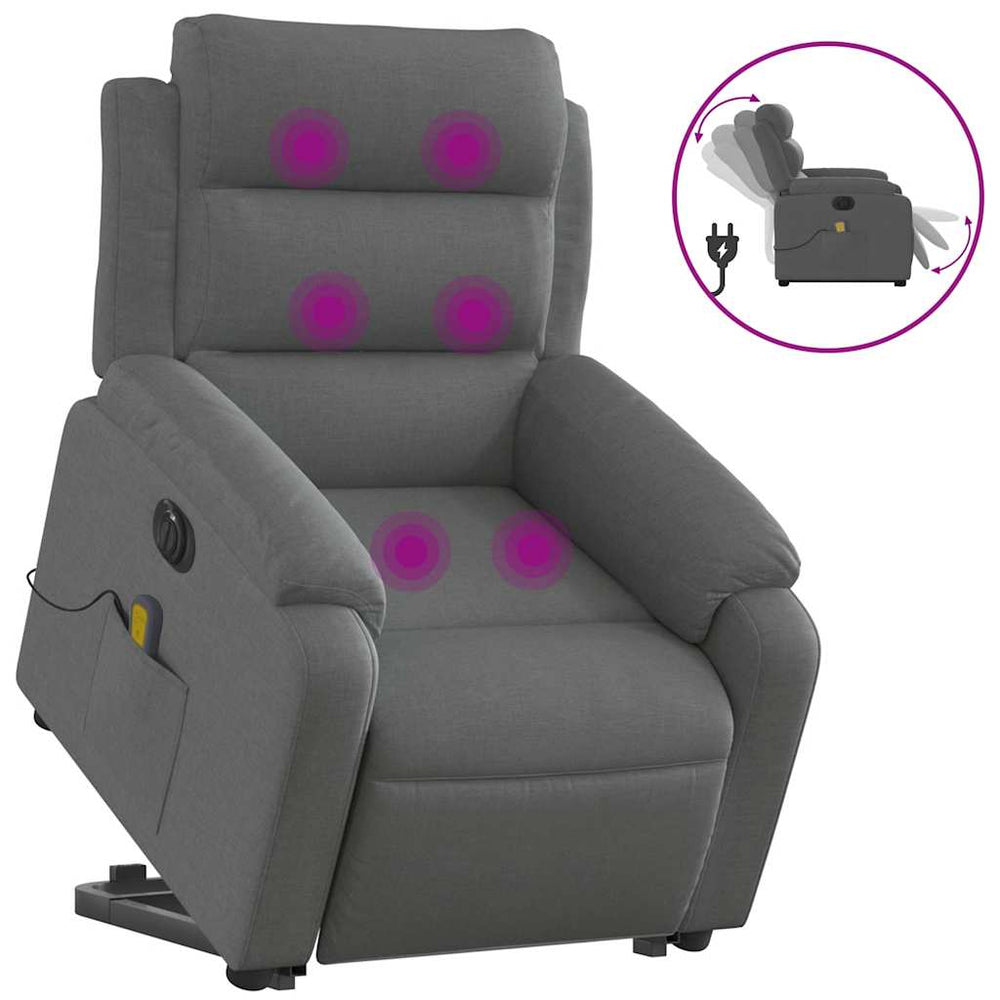 elektrisk massagestol med løftefunktion stof mørkegrå
