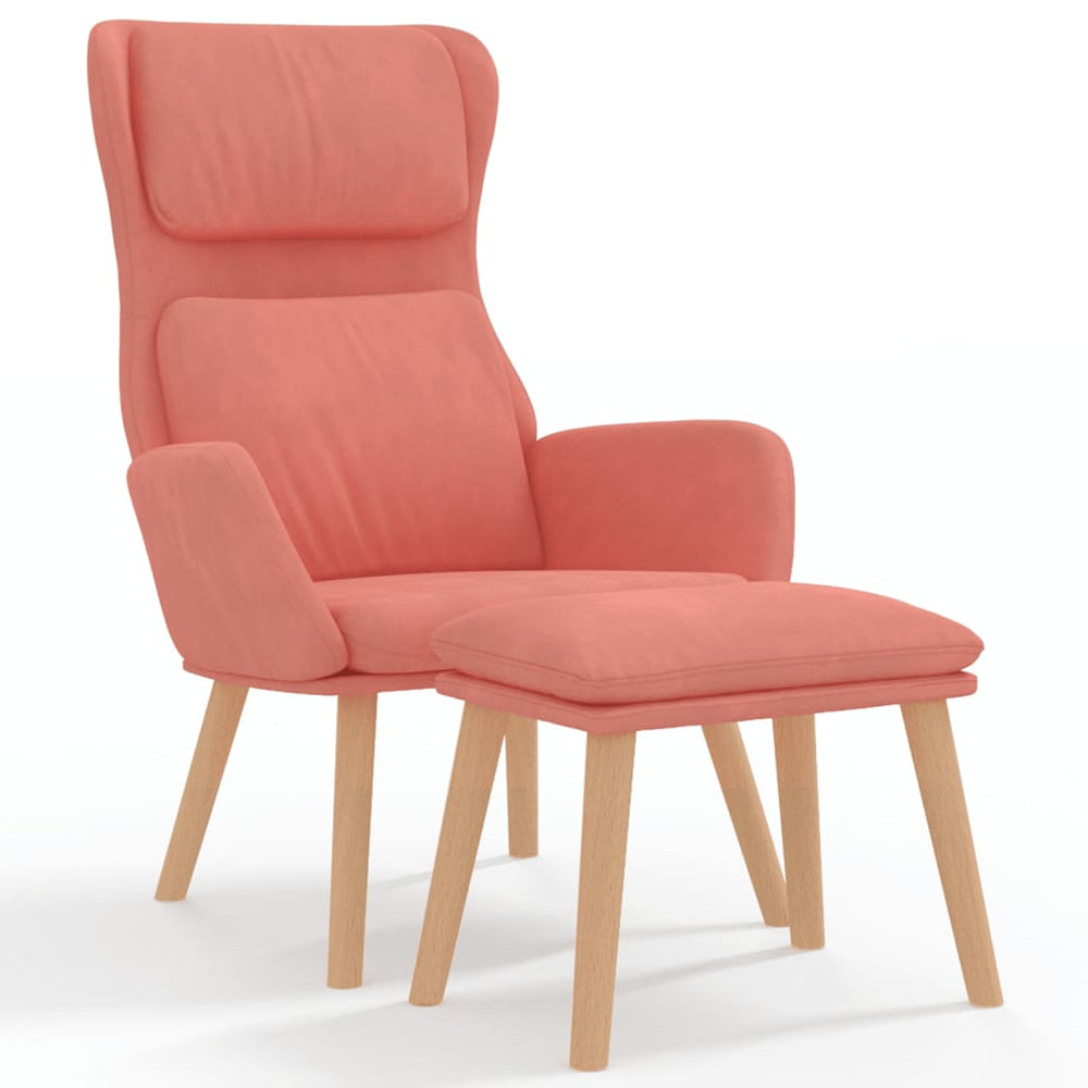 lænestol med fodskammel fløjl og PVC cremefarvet