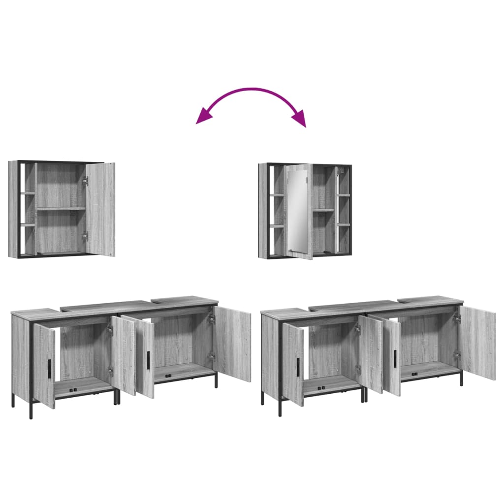 badeværelsesskabe 3 dele konstrueret træ grå sonoma-eg