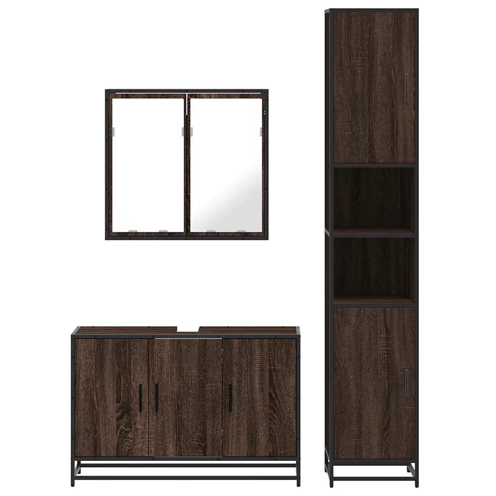 møbelsæt til badeværelse 3 dele konstrueret træ brunt egetræ