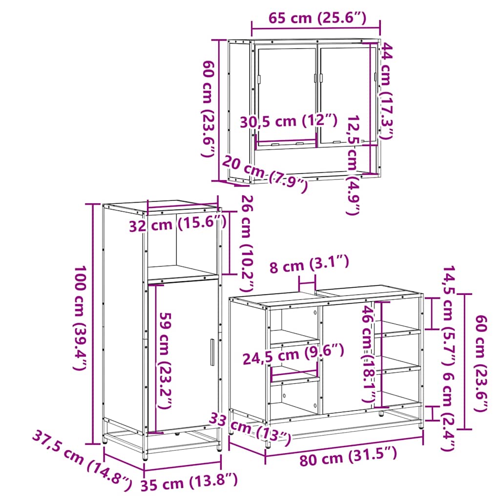 møbelsæt til badeværelse 3 dele konstrueret træ brunt egetræ