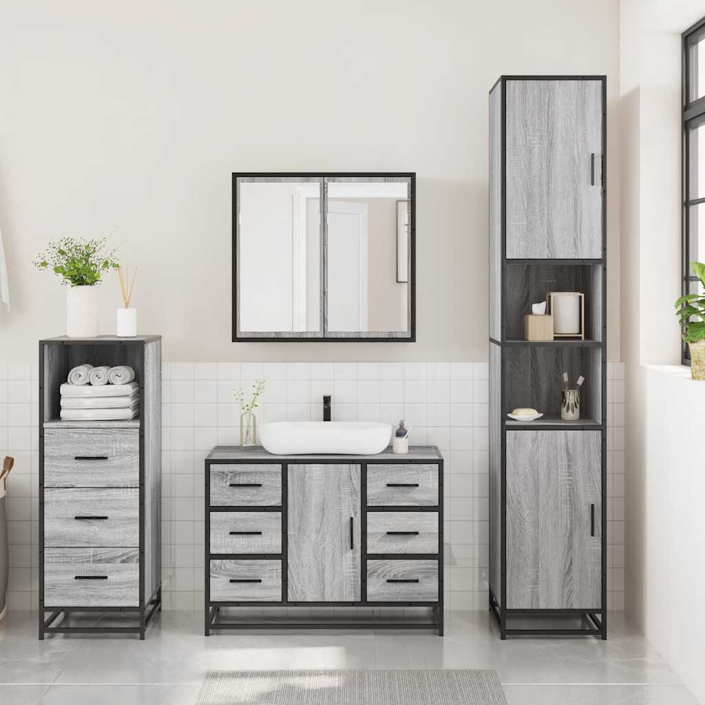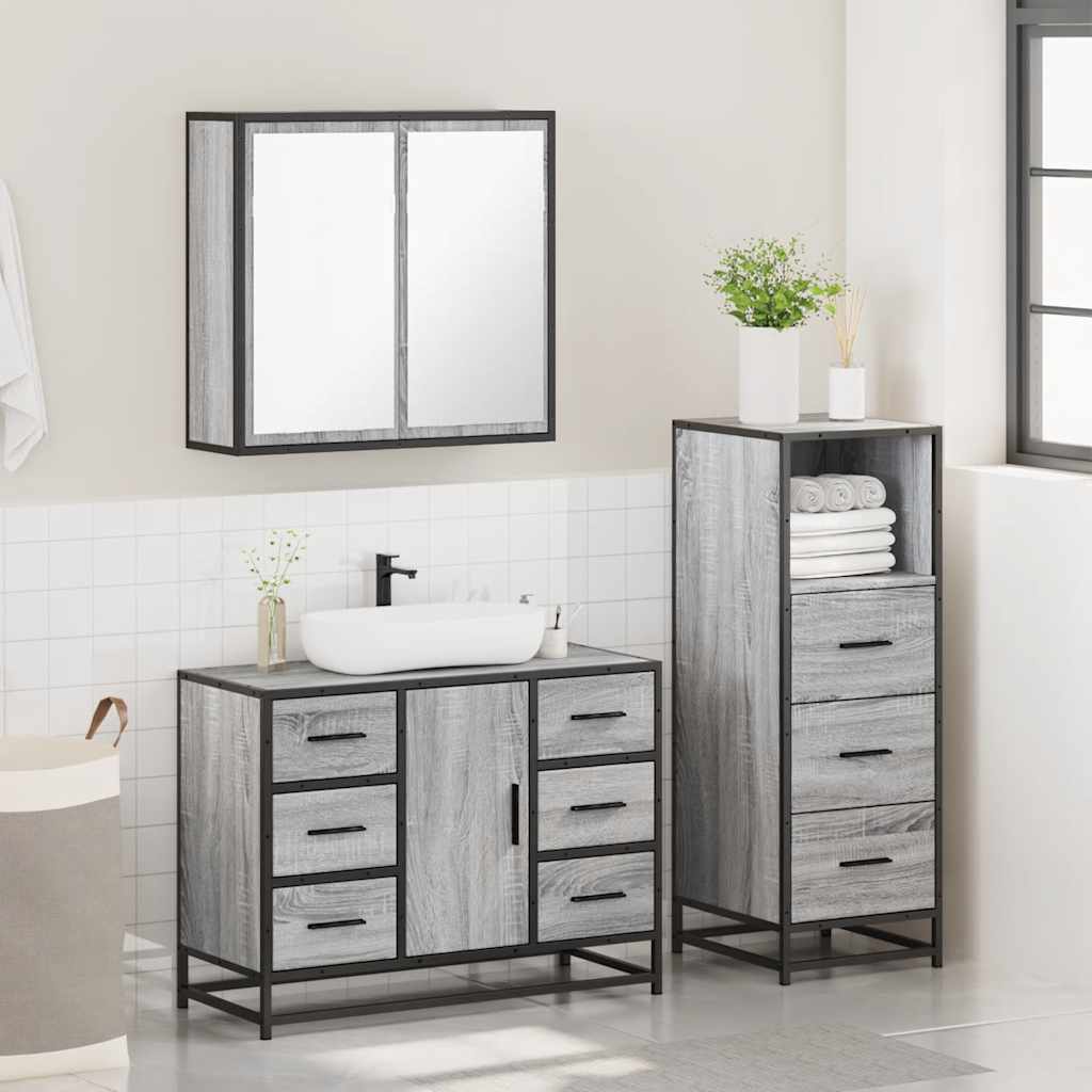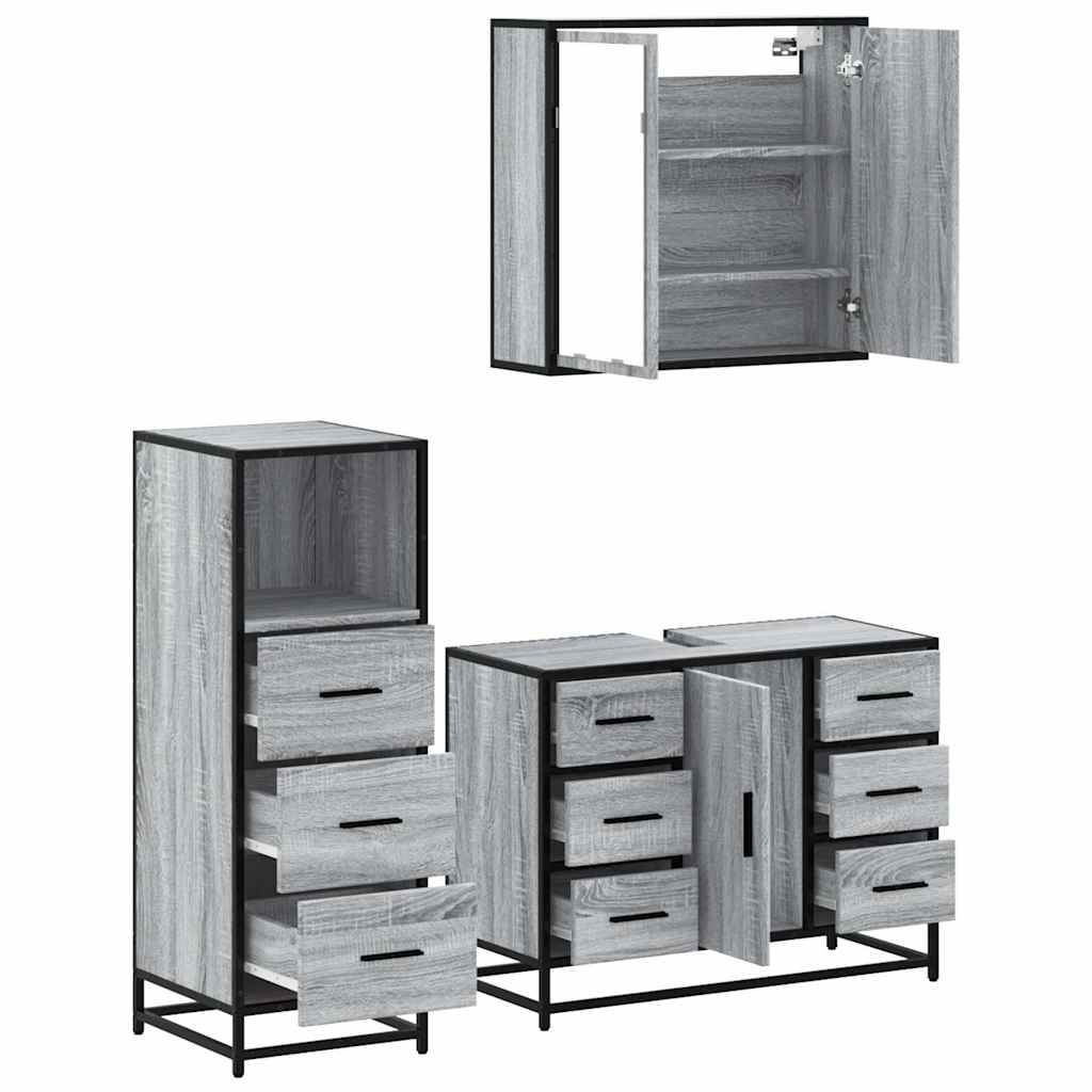 møbelsæt til badeværelse 3 dele konstrueret træ grå sonoma-eg