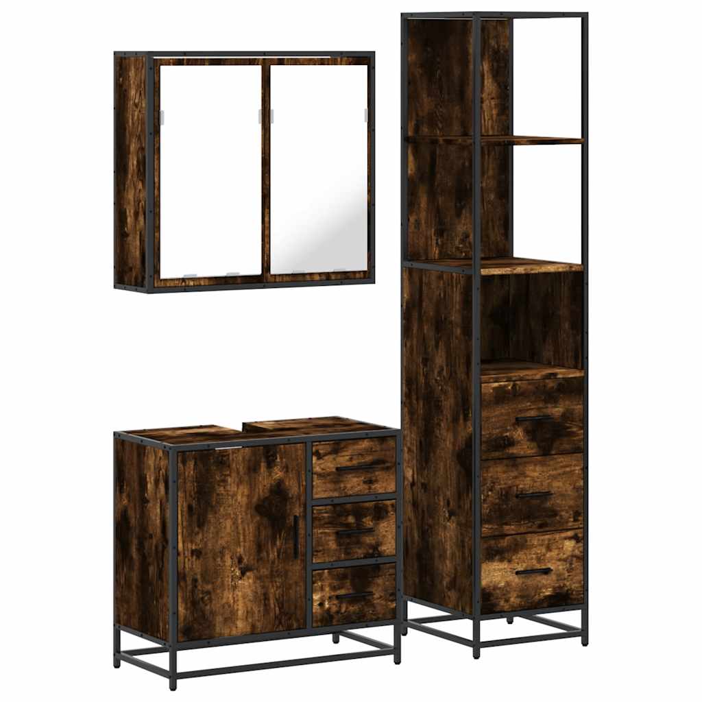 møbelsæt til badeværelse 3 dele konstrueret træ røget sonoma-eg
