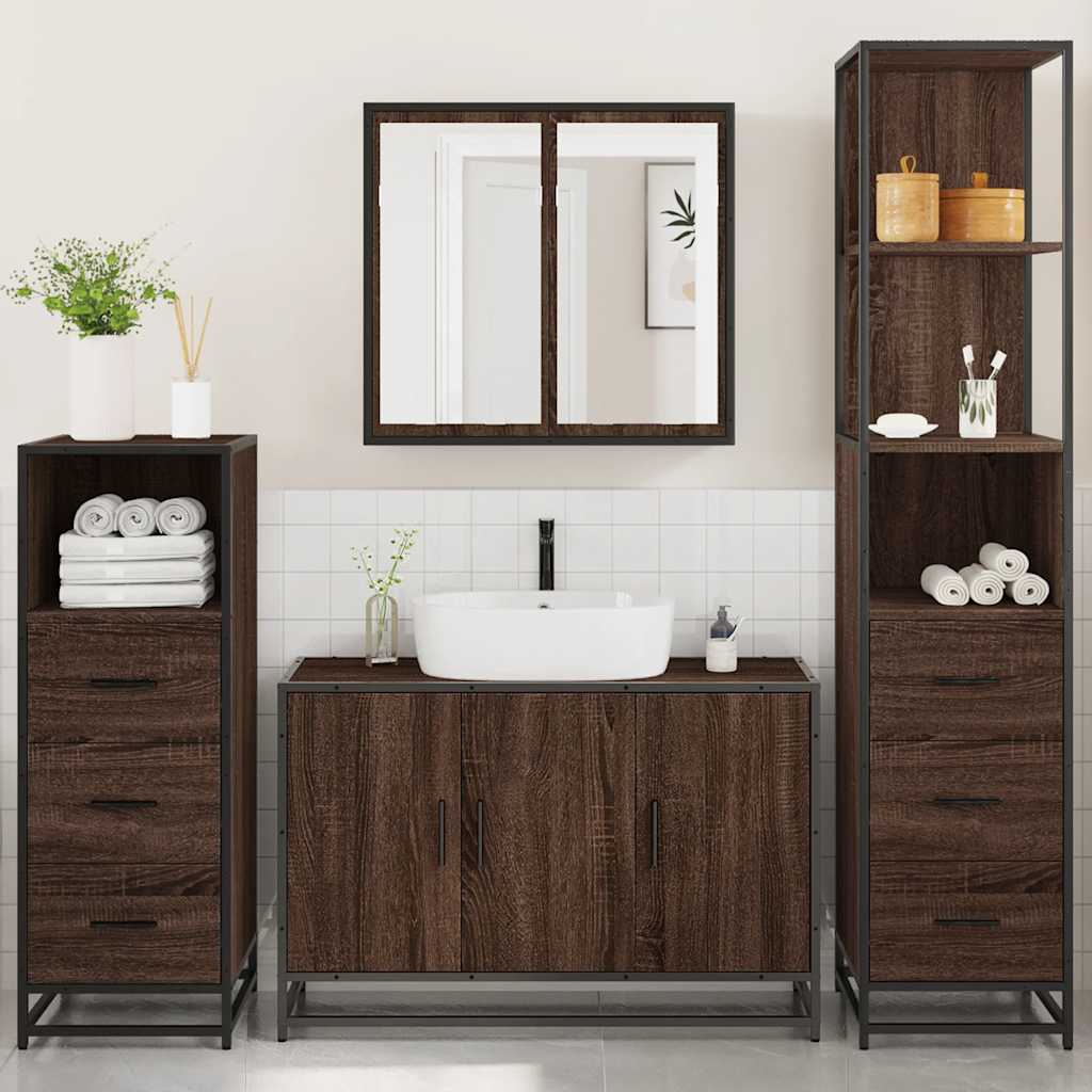 møbelsæt til badeværelse 4 dele konstrueret træ brunt egetræ