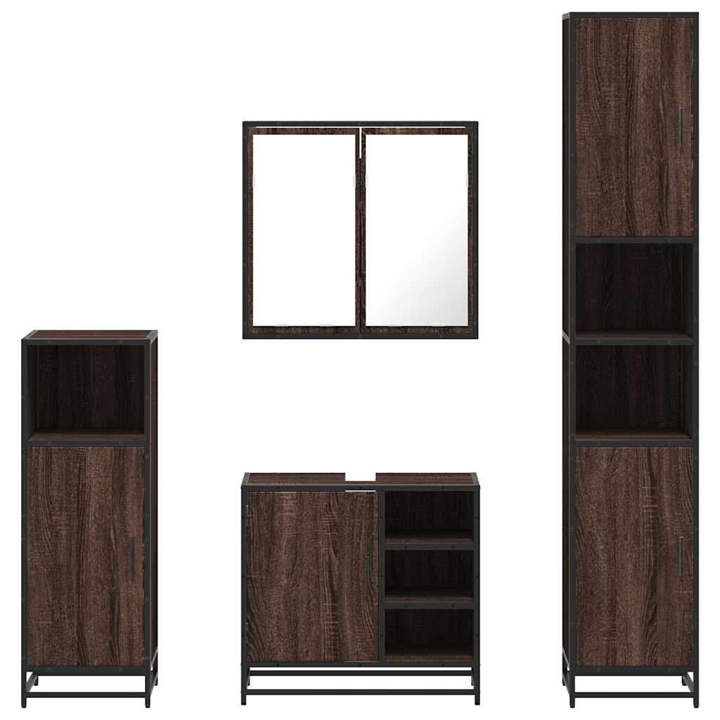 møbelsæt til badeværelse 4 dele konstrueret træ brunt egetræ