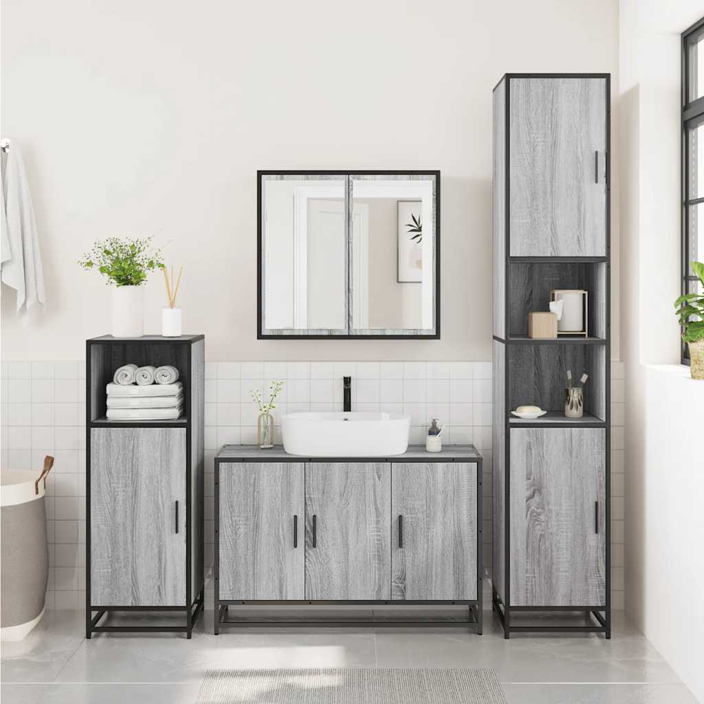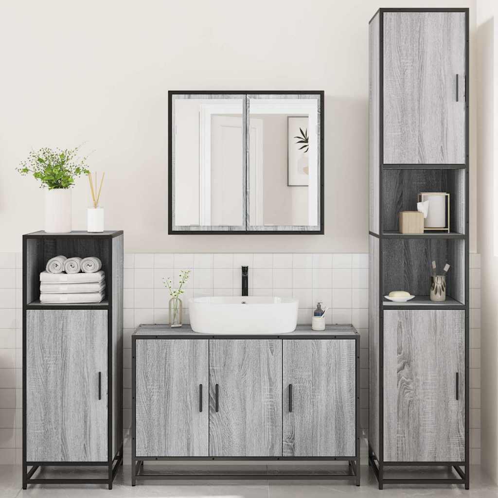 møbelsæt til badeværelse 4 dele konstrueret træ grå sonoma-eg