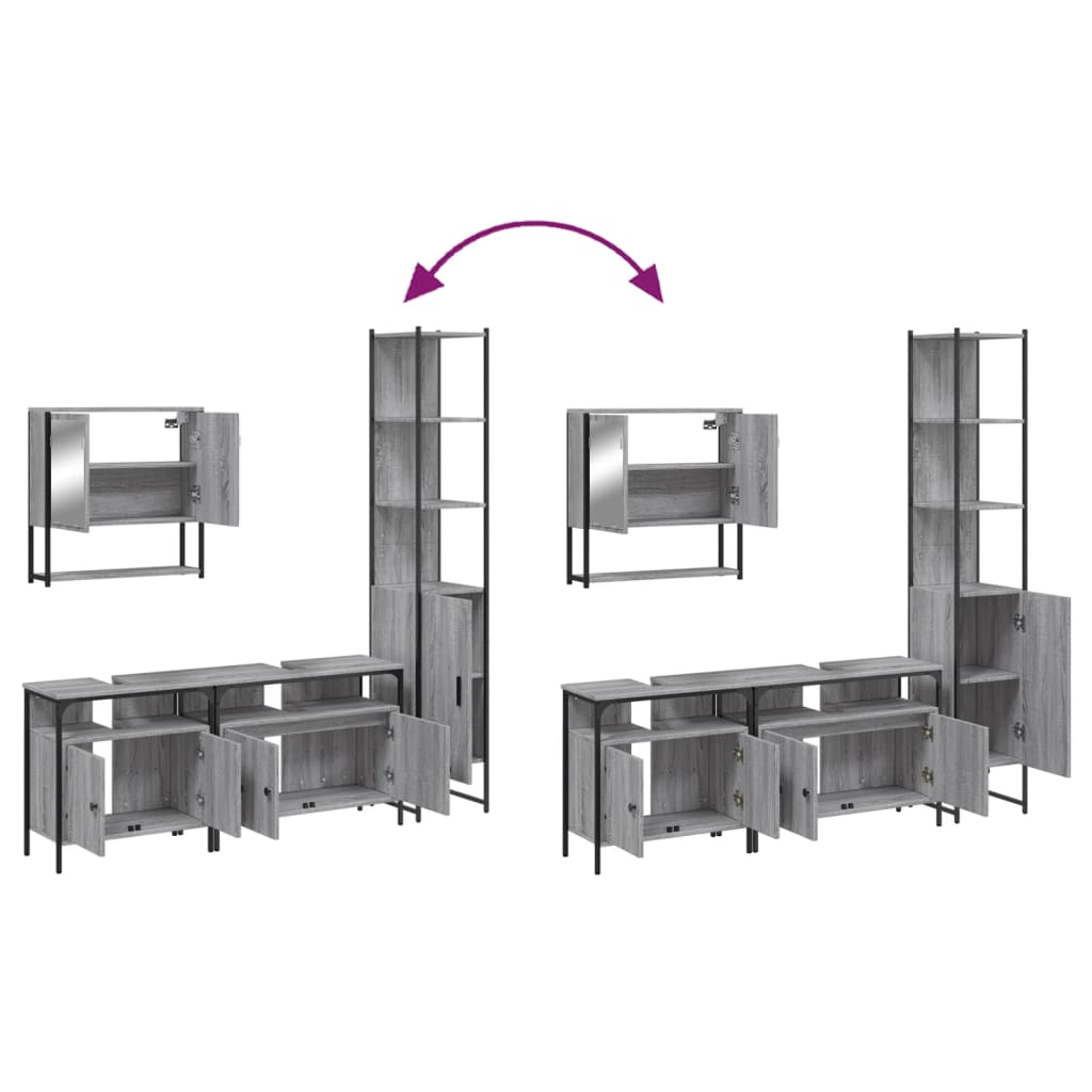 møbelsæt til badeværelse 4 dele konstrueret træ grå sonoma-eg