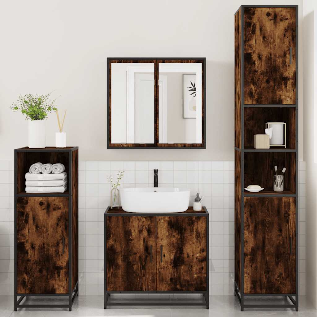 møbelsæt til badeværelse 4 dele konstrueret træ røget sonoma-eg
