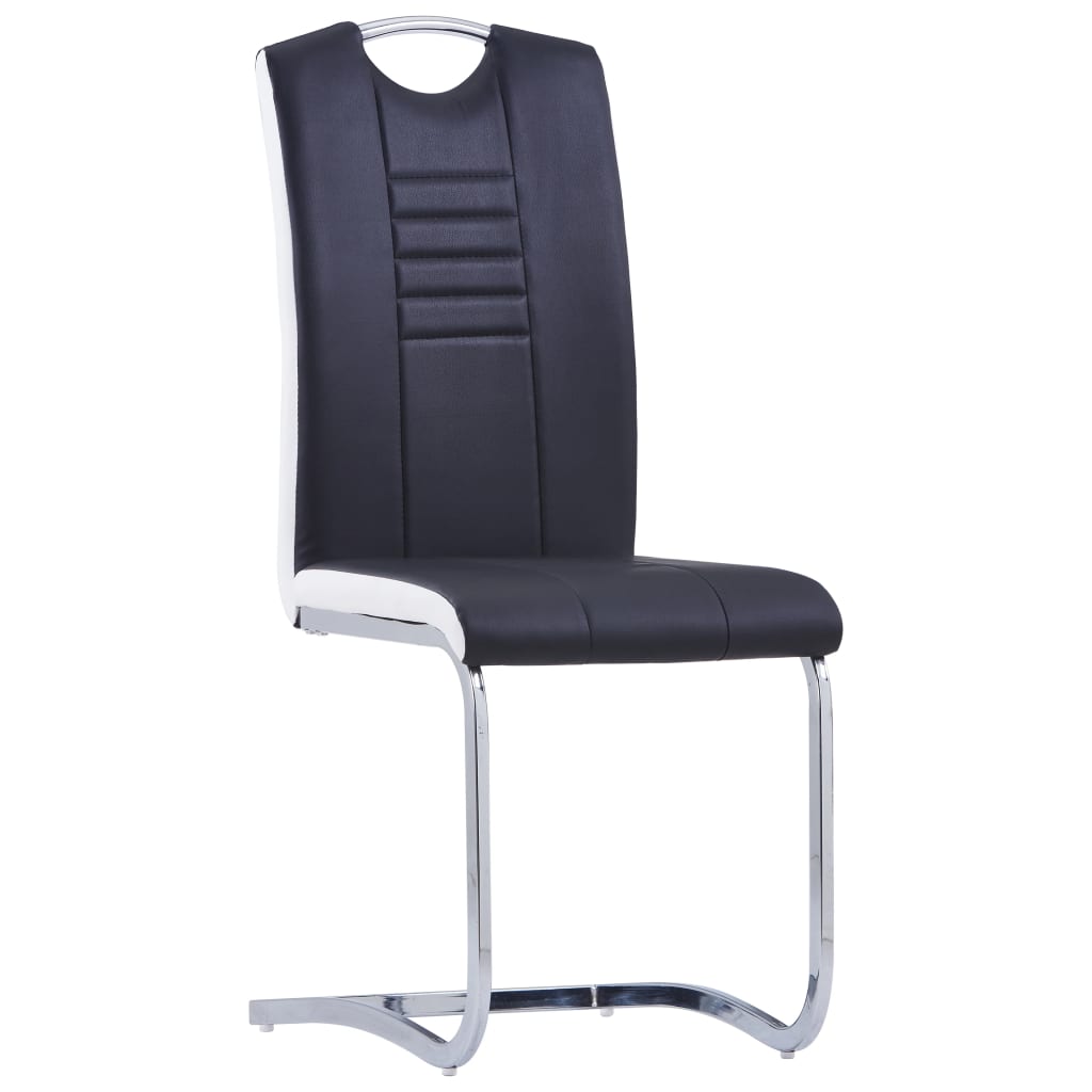 Bordet har en bordplade i hærdet glas, der er let at rengøre med en fugtig klud. Det pulverlakerede metalstel bidrager til den solide konstruktion og giver fremragende stabilitet og holdbarhed. Stolene er betrukket med blødt kunstlæder og er tyktpolstrede for at give maksimal komfort. Det ergonomiske design gør spisebordsstolene yderst behagelige at sidde på. Stolene er yderst robuste og stabile takket være det krombelagte stålstel. Spisebordsstolene er forsynet med et håndtag på deres ryglæn, så de er praktiske og lette at flytte rundt på. Dette spisebordssæt er let at samle.